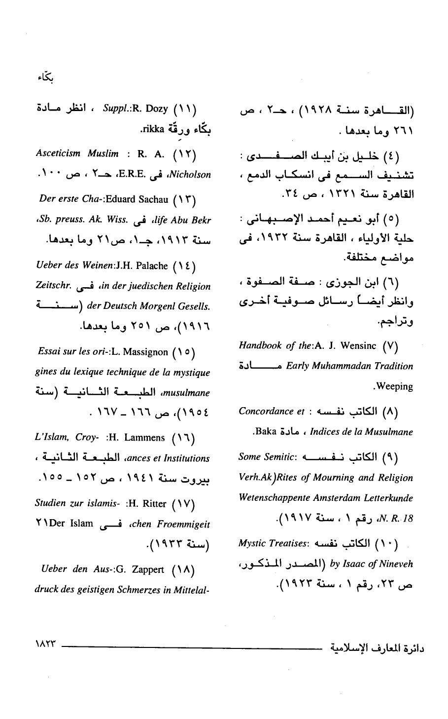 (7) Handbook of the: A. J. Wensinc on arly Muhammadan Traditi E مادة Weeping .