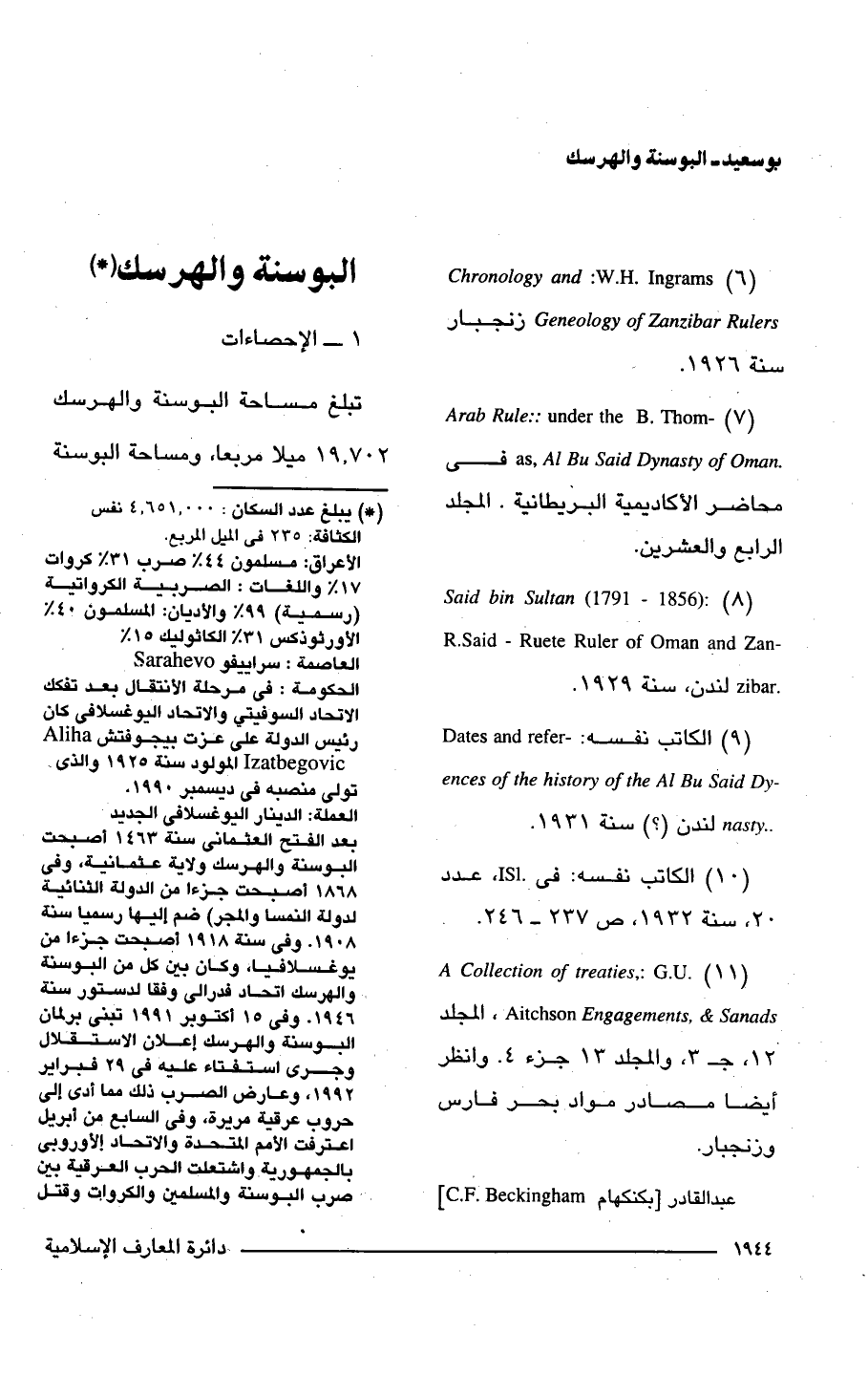 (9) الكاتب نفسه: - ences of the history of the Al Bu Said Dy .. nasty لندن (؟ ) سنة 1931.