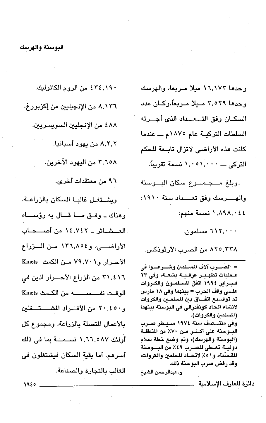 وبلغ مجموع سكان البوسنة والهرسك وفق تعداد سنة 1910: 1.898.044 نسمة منهم:
