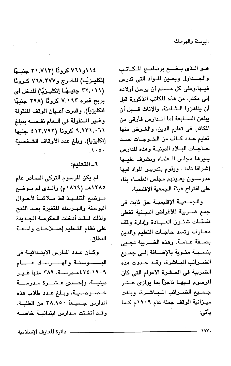 114 و 761 كرونًا (31.713 جنيهًا إنكليزيًا) للخرج 768.277 كرونًا (32.011 جنيهًا إنكليزيًا) للدخل أي بربح قدره 7.163 كرونًا (298 جنيهًا إنكليزيًا). وقدرت أعيان الوقف المنقولة وغير المنقولة في العام نفسه بمبلغ 9.931.061 كرونا (413.793 جنيها إنكليزيا). وبلغ عدد وقاف الشخصية 1050.