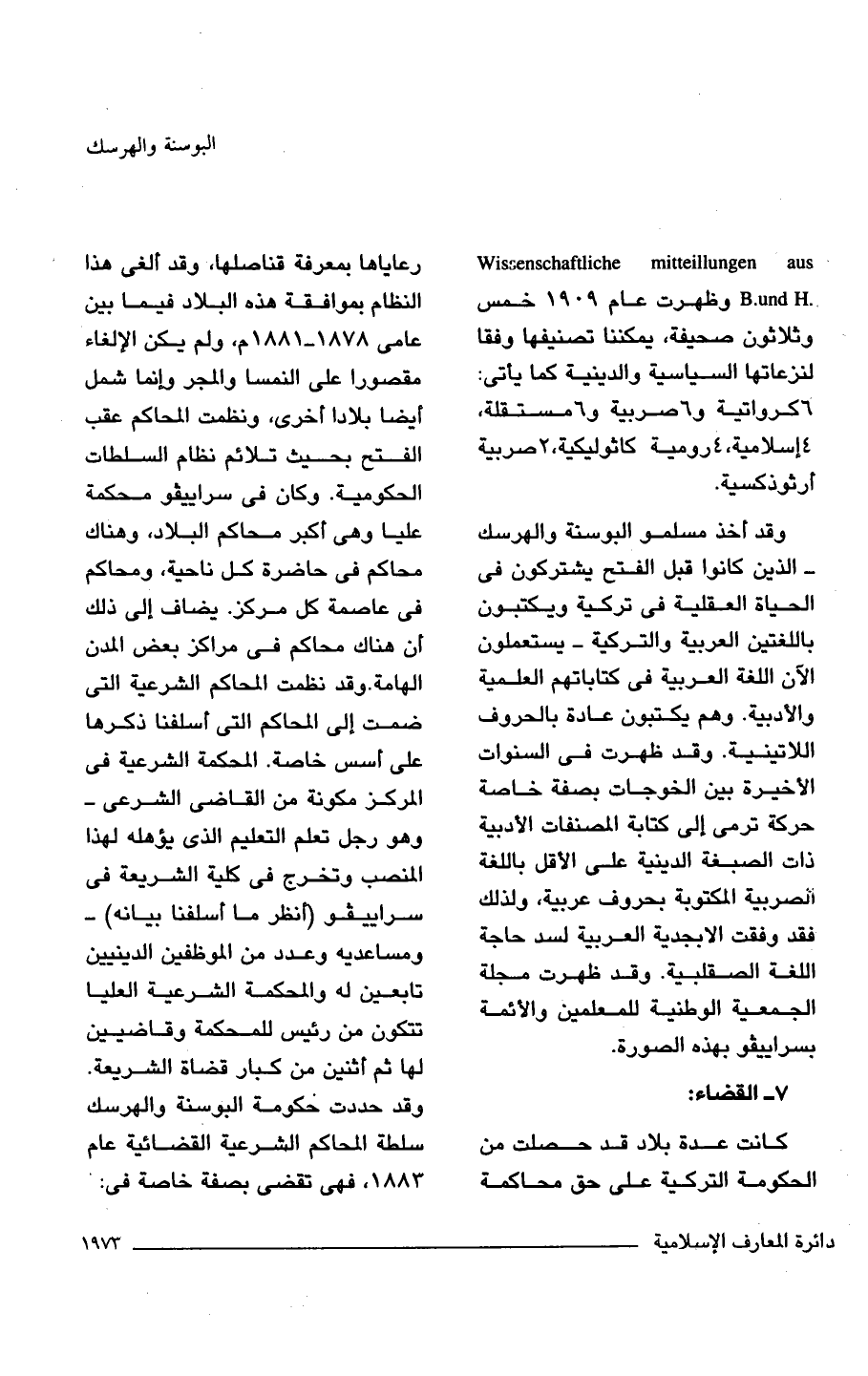 Wissenschaftliche mitteillungen aus -R-und H وظهرت عام 1909 خمس وثلاثون صحيفة، يمكننا تصنيفها وفقا لنزعاتها السياسية والدينية كما يأتي: 6 كرواتية و 6 صربية و 6 مستقلة، 4 إسلامية، 4 رومية كاثوليكية، 2 صربية أرثوذكسية.