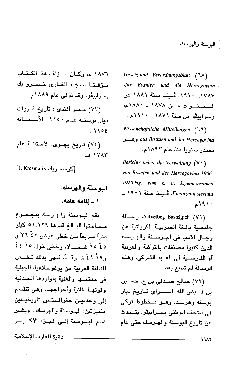(68) Gesetz-und Verordnungsblatt fur Bosnien and die Hercegovina 1787 - 1910. فينا سنة 1881 عن السنوات من 1878 - 1880 م، وسراييفو من سنة 1871 - 1910 م.