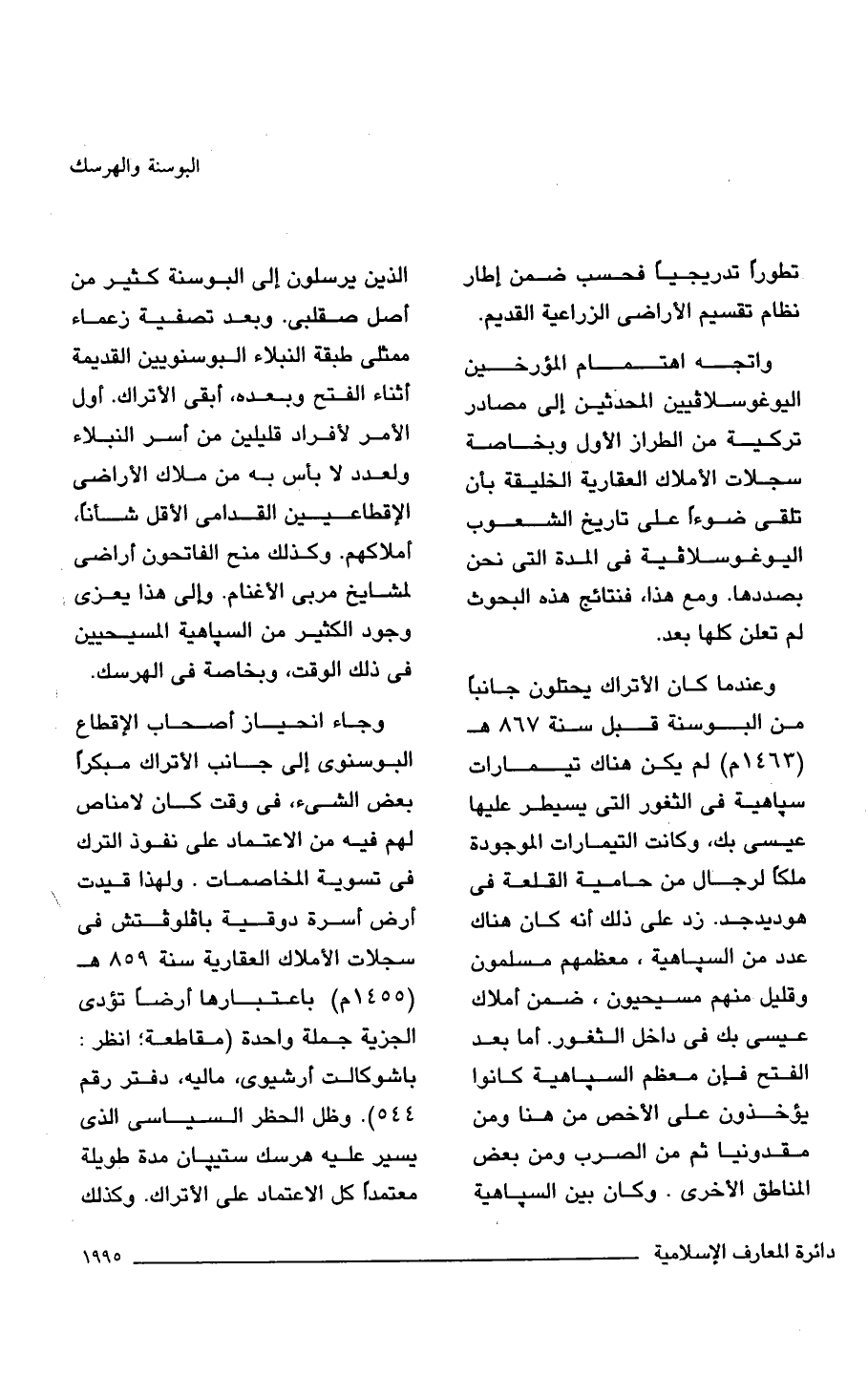 وجاء انحياز أصحاب الإقطاع البوسنوى إلى جانب الأتراك مبكرًا بعض الشيء، في وقت كان لامناص لهم فيه من الاعتماد على نفوذ الترك في تسوية المخاصمات. ولهذا قيدت أرض أسرة دوقية بافلوفتش في سجلات الأملاك العقارية سنة 859 هـ (1455 م) باعتبارها أرضًا تؤدى الجزية جملة واحدة (مقاطعة؛ انظر: باشوكالت أرشيوى، ماليه، دفتر رقم 544). وظل الحظر السياسي الذي يسير عليه هرسك ستيبان مدة طويلة معتمدًا كل الاعتماد على الأتراك. وكذلك