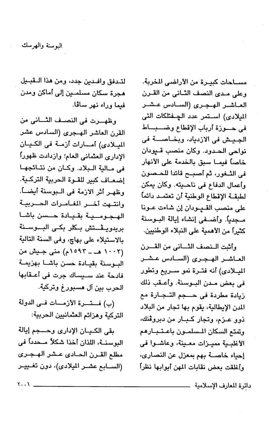 مساحات كبيرة من الأراضي المخربة. وعلى مدى النصف الثاني من القرن العاشر الهجرى (السادس عشر الميلادي) استمر عدد الجفتلكات التي في حوزة أرباب الإقطاع وضباط الجيش في الازدياد، وبخاصة في نواحى الحدود. وكان منصب قبودان خاصًّا فيما سبق بالخدمة على الأنهار في الثغور، ثم أصبح قائدا للحصون وأعمال الدفاع في ناحيته. وكان يمكن لطبقة الاقطاع الوطنية أن تعتمد دائمًا على منصب القبودان إن شاءت عونا مجديًا. وأضفى إنشاء إيالة البوسنة كثيرًا من الأهمية على النبلاء الوطنيين.
