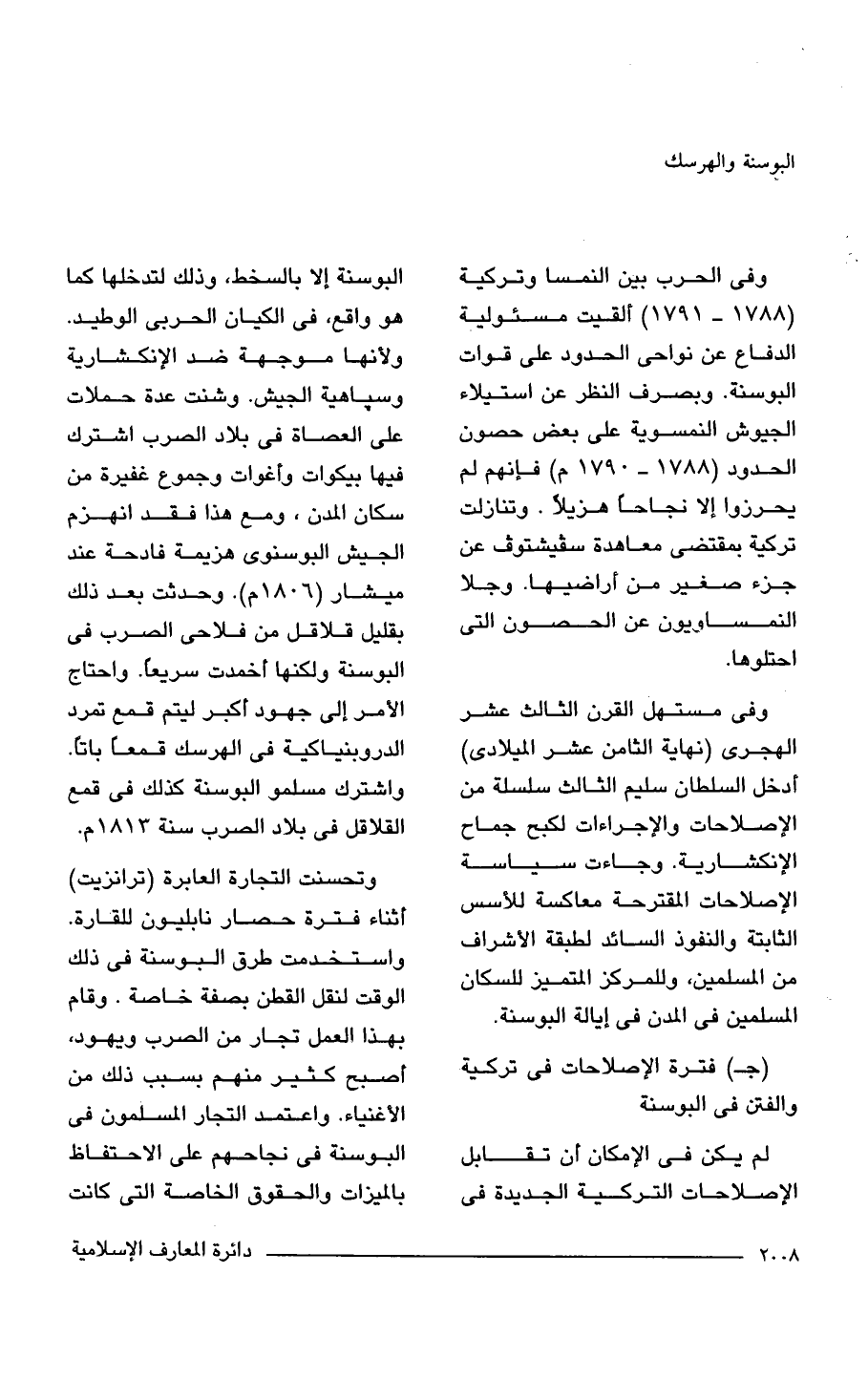 (جـ) فترة الإصلاحات في تركية والفتن في البوسنة.