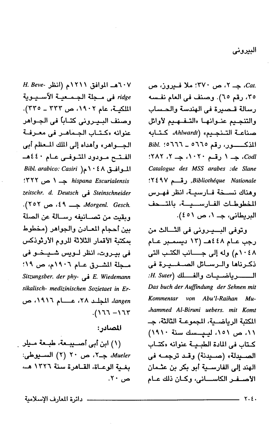 cat، جـ 2، ص 370؛ ملا فيروز، ص 35، رقم 65). وصنف في العام نفسه رسالة قصيرة في الهندسة والحساب والتثجيم عنوانها "التفهيم لأوائل صناعة التنجيم" (Ahlwardt، كتابه المذكور، رقم 5665 - 5666؛ Bibl. codl، جـ 1 رقم 1020، جـ 2، 282؛ des MSS arabes: de Slane Catalogue Bibliotheque Nationale، رقم 2497؛ وهناك نسخة فارسية، انظر فهرس المخطوطات الفارسية، بالمتحف البريطانى، جـ 1، ص 451).