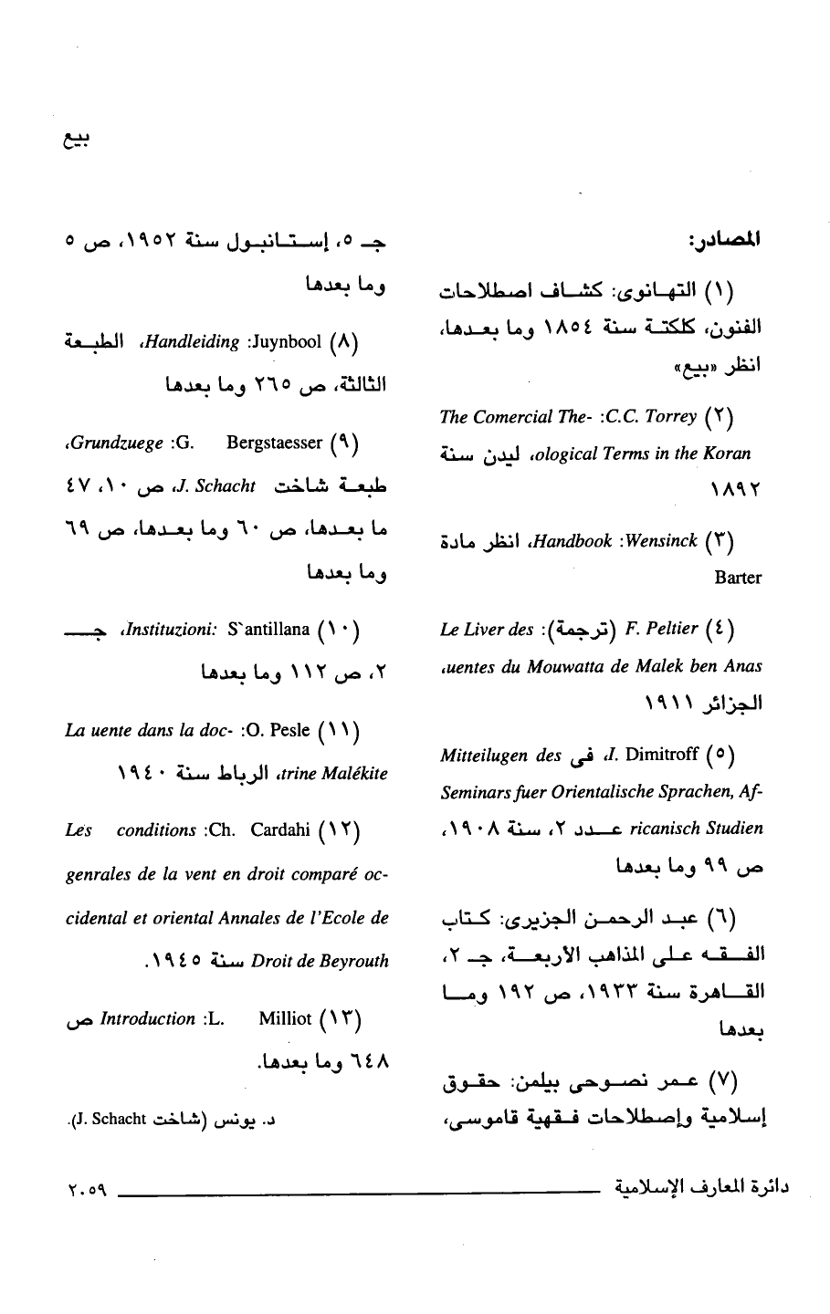 (1) التهانوى: كشاف اصطلاحات الفنون، كلكتة سنة 1854 وما بعدها، انظر "بيع".