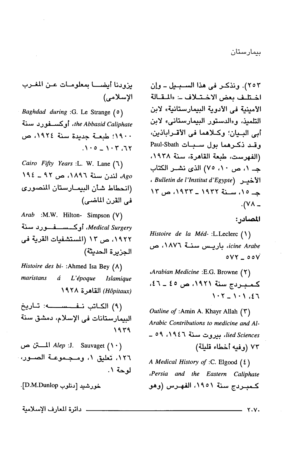 (4) A Medical History of: C. Elgood Persia and the Eastern Caliphate, كمبردج سنة 1951، الفهرس (وهو يزودنا أيضًا بمعلومات عن المغرب الإسلامي)