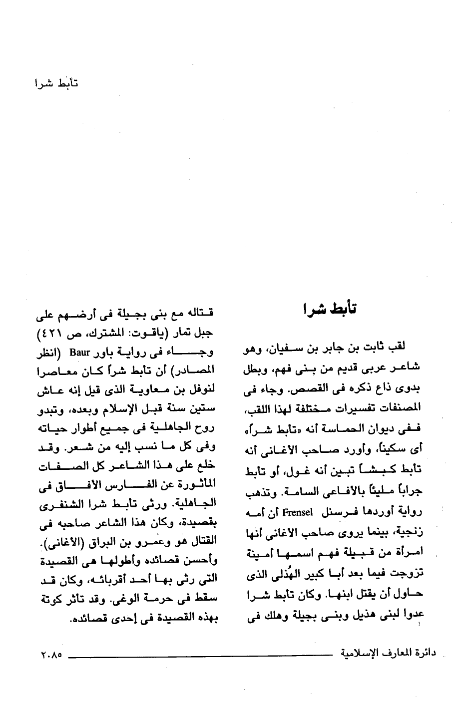 لقب ثابت بن جابر بن سفيان، وهو شاعر عربي قديم من بنى فهم، وبطل بدوى ذاع ذكره في القصص. وجاء في المصنفات تفسيرات مختلفة لهذا اللقب، ففي ديوان الحماسة أنه "تأبط شرًّا" أي سكينًا، وأورد صاحب الأغانى أنه تأبط كبشًا تبين أنه غول، أو تأبط جرابًا مليئًا بالأفاعى السامة وتذهب رواية أوردها فرسنل Frensel أن أمه زنجية، بينما يروى صاحب الأغانى أنها امرأة من قبيلة فهم اسمها أمينة تزوجت فيما بعد أبا كبير الهُذلى الذي حاول أن يقتل ابنها. وكان تأبط شرا عدوا لبنى هذيل وبنى بجيلة وهلك في قتاله مع بنى بجيلة في أرضهم على جبل تمار (ياقوت: المشترك، ص 421) وجاء في رواية باور Baur (انظر المصادر) أن تأبط شرًّا كان معاصرا لنوفل بن معاوية الذي قيل إنه عاش ستين سنة قبل الإسلام وبعده، وتبدو روح الجاهلية في جميع أطوار حياته وفي كل ما نسب إليه من شعر. وقد خلع على هذا الشاعر كل الصفات المأثورة عن الفارس الأفاق في الجاهلية. ورثى تأبط شرا الشنفرى بقصيدة، وكان هذا الشاعر صاحبه في القتال هو وعمرو بن البراق (الأغانى). وأحسن قصائده وأطولها هي القصيدة التي رثى بها أحد أقربائه، وكان قد سقط في حرمة الوغى. وقد تأثر كوتة بهذه القصيدة في إحدى قصائده.