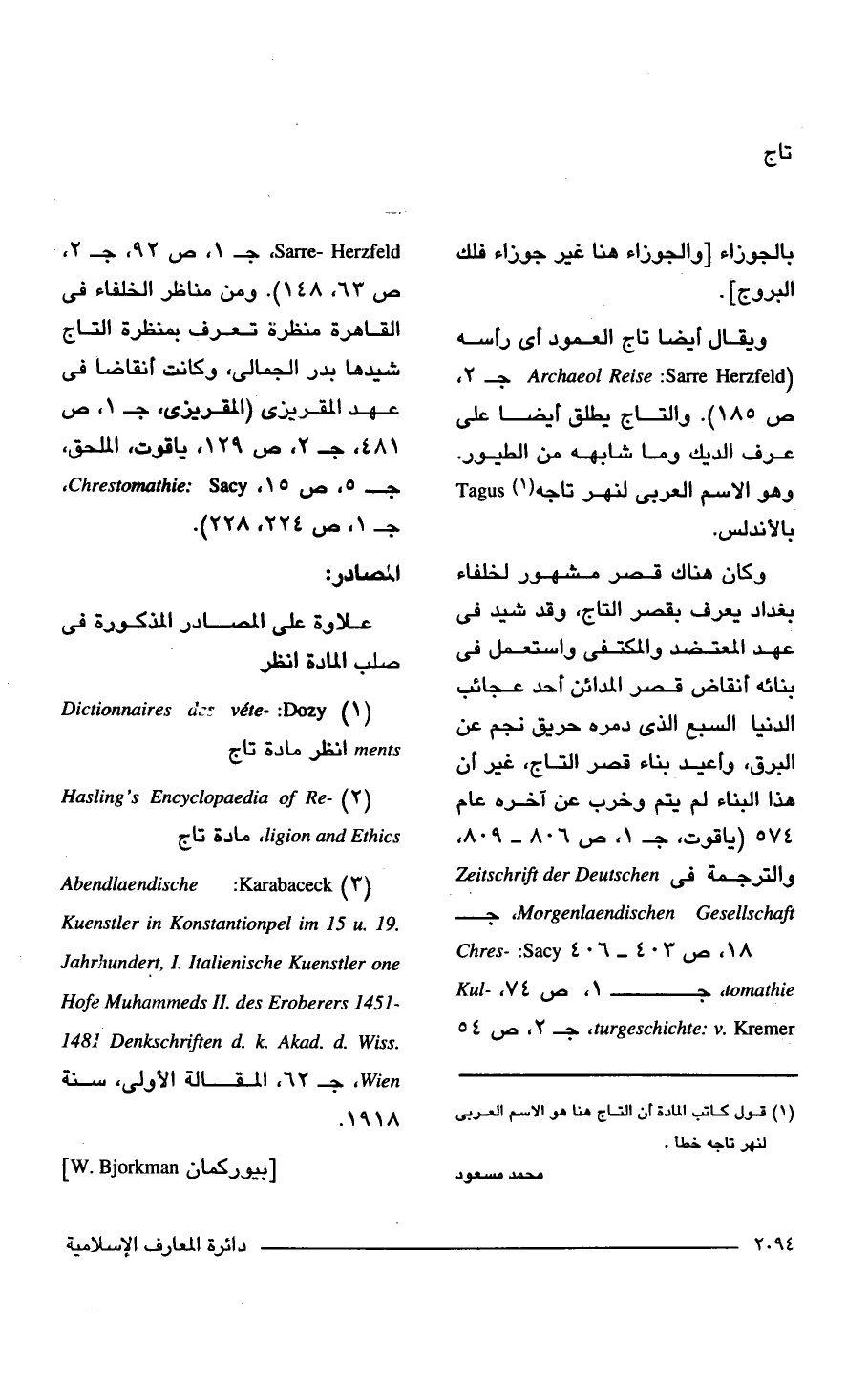 (2) Hasling's Encyclopaedia of Re- ligion and Ethics مادة تاج