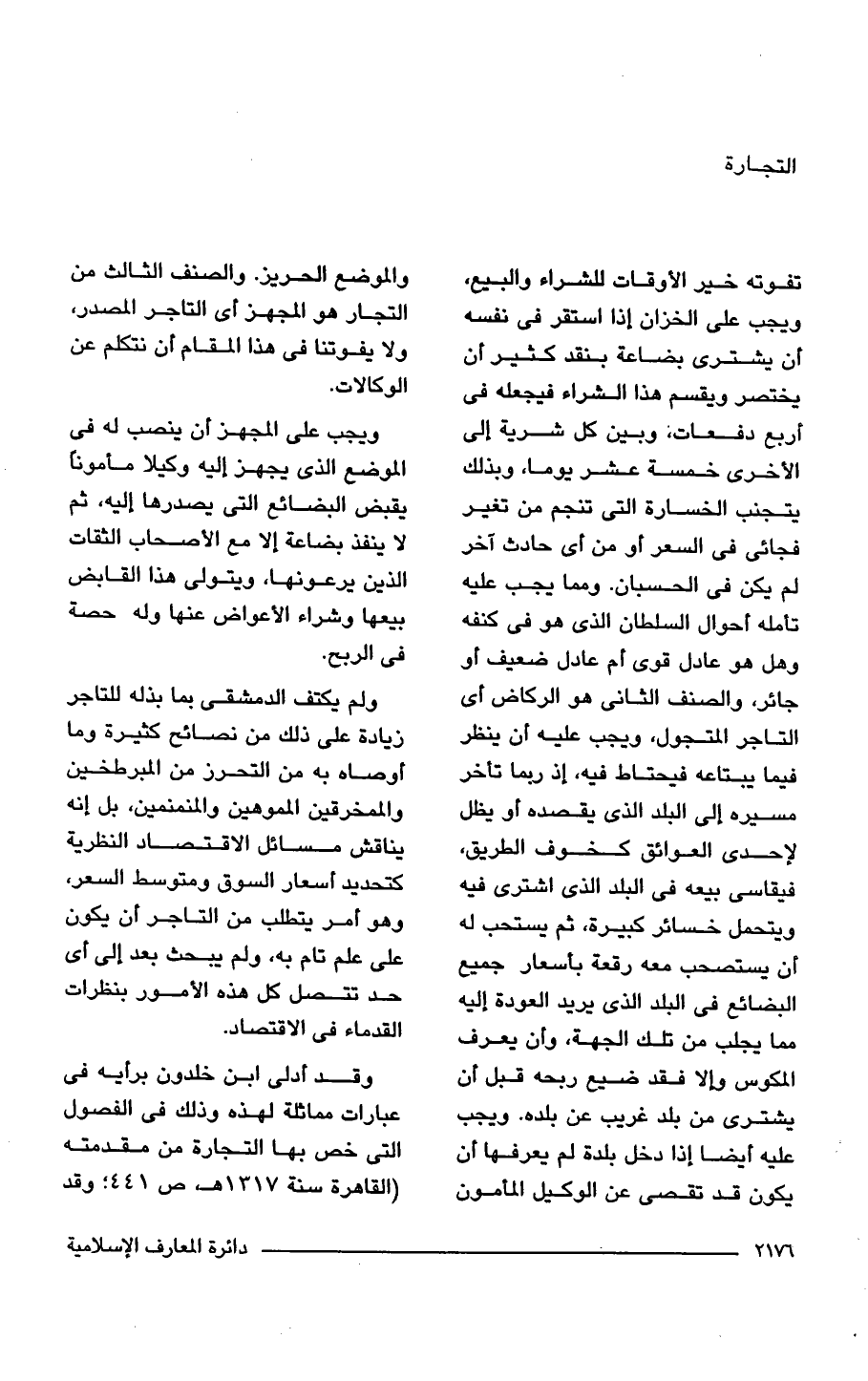 وقد أدلى ابن خلدون برأيه في عبارات مماثلة لهذه وذلك في الفصول التي خص بها التجارة من مقدمته (القاهرة سنة 1317 هـ، ص 441؛ وقد