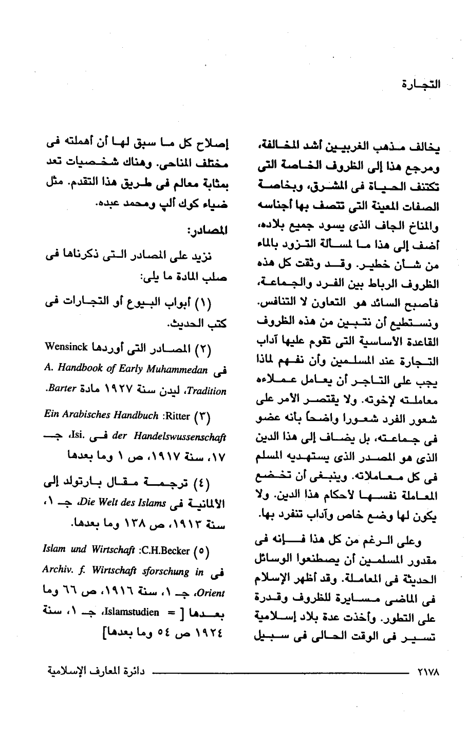 (5) Islam und Wirtschaft: C.H.Becker في Archiv. f. Wirtschaft sforschung in Orient، جـ 1، سنة 1916، ص 66 وما بعدها [= Islamstudien، جـ 1، سنة 1924 ص 54 ما بعدها]
