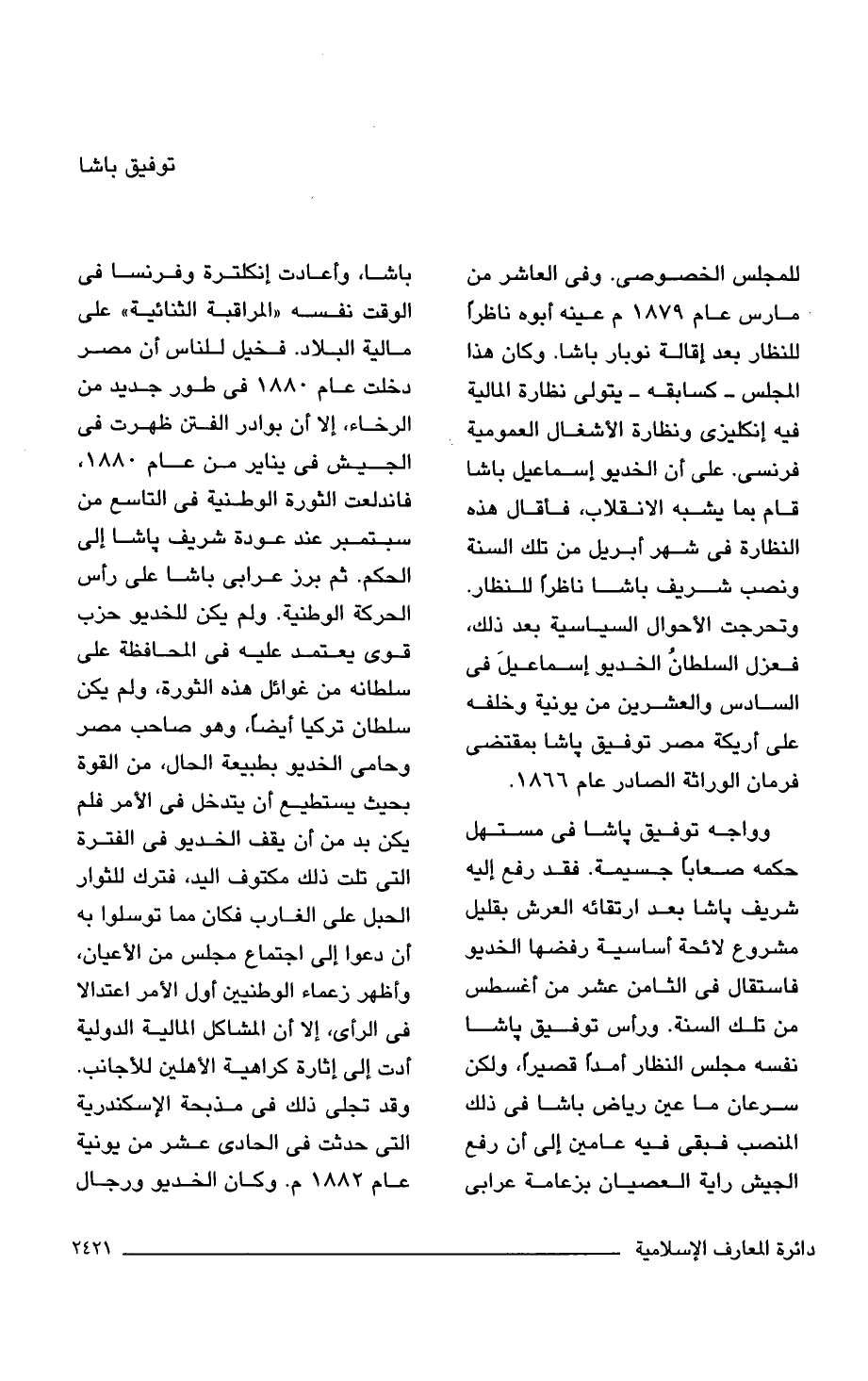 للمجلس الخصوصى. وفي العاشر من مارس عام 1879 عينه أبوه ناظرًا للنظار بعد إقالة نوبار باشا. وكان هذا المجلس- كسابقه- يتولى نظارة المالية فيه إنكليزى ونظارة الأشغال العمومية فرنسى. على أن الخديو إسماعيل باشا قام بما يشبه الانقلاب، فأقال هذه النظارة في شهر أبريل من تلك السنة ونصب شريف باشا ناظرًا للنظار. وتحرجت الأحوال السياسية بعد ذلك، فعزل السلطان الخديو إسماعيل في السادس والعشرين من يونية وخلفه على أريكة مصر توفيق باشا بمقتضى فرمان الوراثة المصادر عام 1866.