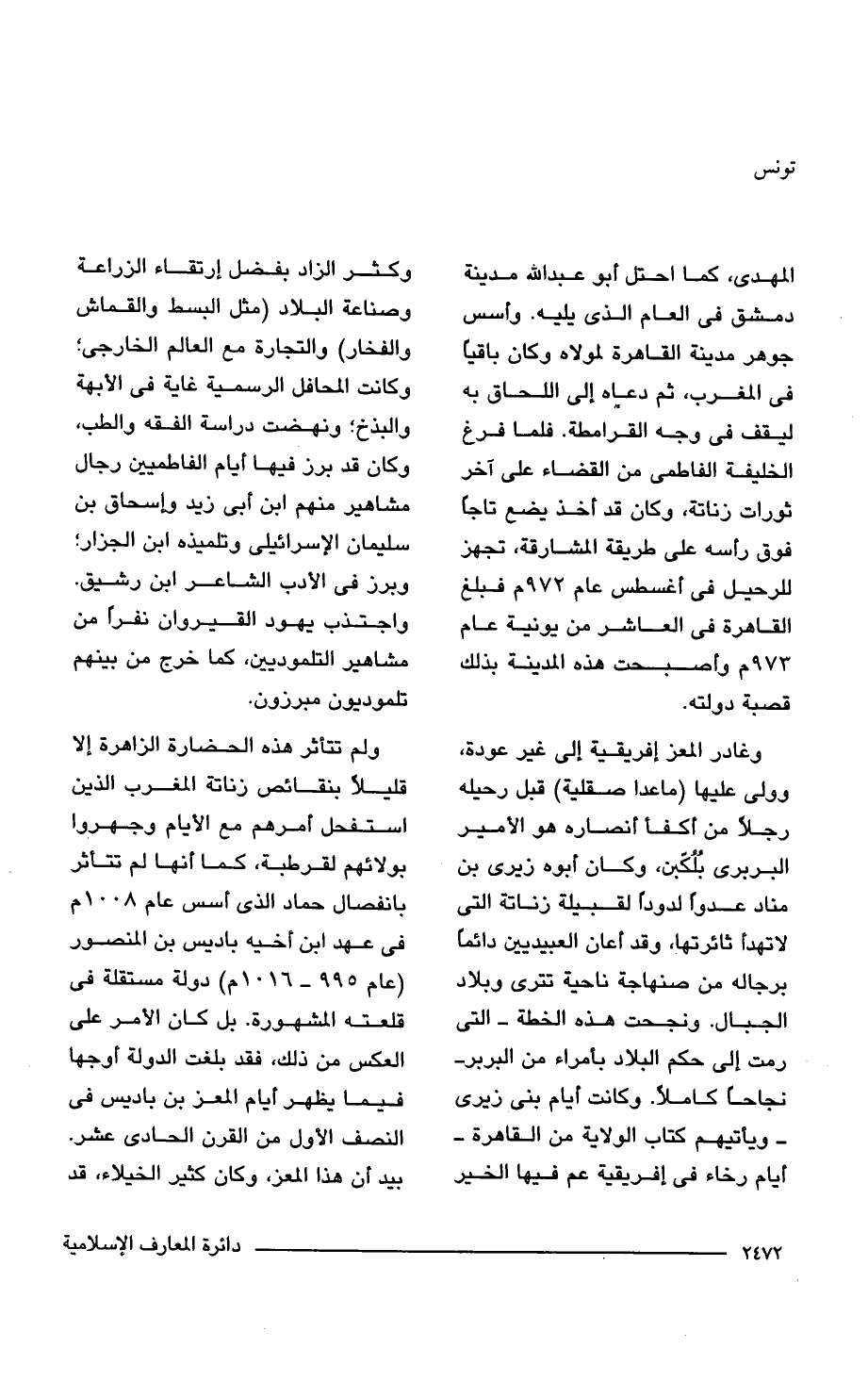 ولم تتأثر هذه الحضارة الزاهرة إلا قليلًا بنقائص زناتة المغرب الذين استفحل أمرهم مع الأيام وجهروا بولائهم لقرطبة، كما أنها لم تتأثر بانفصال حماد الذي أسس عام 1008 م في عهد ابن أخيه باديس بن المنصور (عام 995 - 1016 م) دولة مستقلة في قلعته المشهورة. بل كان الأمر على العكس من ذلك، فقد بلغت الدولة أوجها فيما يظهر أيام المعز بن باديس في النصف الأول من القرن الحادي عشر. بيد أن هذا المعز، وكان كثير الخيلاء، قد