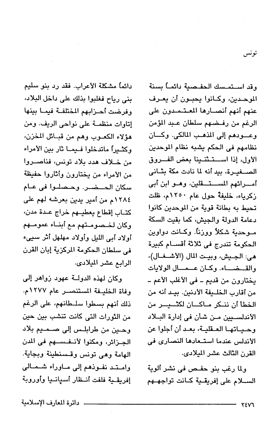 ولما رغب بنو حفص في نشر ألوية السلام على إفريقية كانت تواجههم دائما مشكلة الأعراب. فقد رد بنو سليم بنى رياح فغلبوا بذلدُ على داخل البلاد، وفرضت أحزابهم المختلفة فيما بينها إتاوات منظمة على نواحى الريف. ومن هؤلاء الكعوب وهم من قبائل المخزن، وكثيرًا ماتدخلوا فيما ثار بين الأمراء من خلاف هدد بلاد تونس، فناصروا من الأمراء من يختارون وأثاروا حفيظة سكان الحضر. وحصلوا في عام 1284 م من أمير يدين بعرشه لهم على كتاب إقطاع يعطيهم خراج عدة مدن، وكان لخصومتهم مع أبناء عمومهم أولاد أبي الليل وأولاد مهلهل أثر سيئ في سلطان الحكومة المركزية إبان القرن الرابع عشر الميلادي.