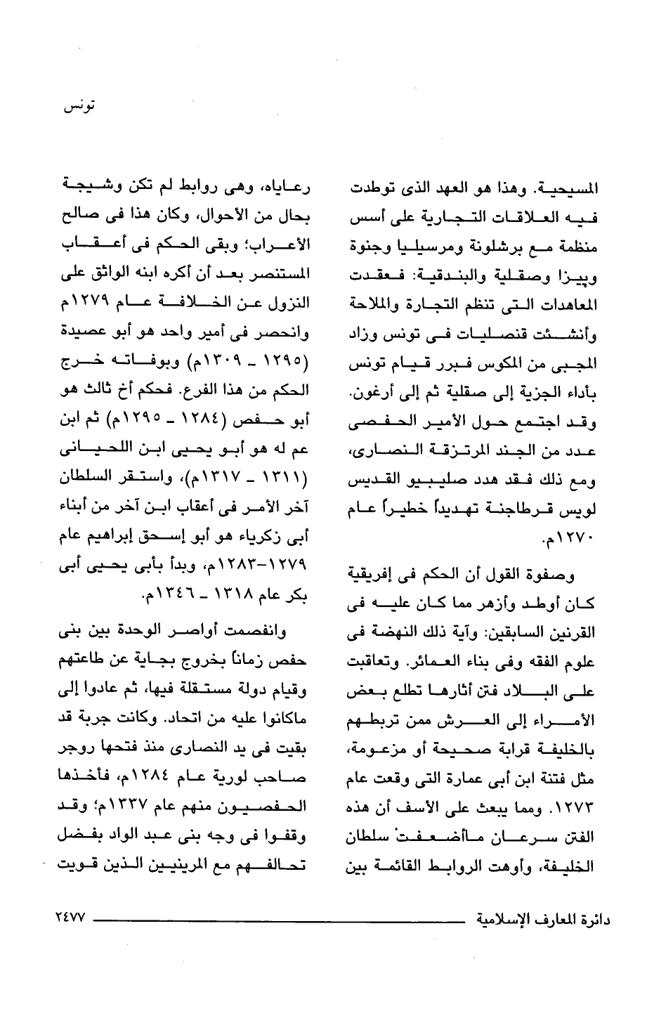 المسيحية. وهذا هو العهد الذي توطدت فيه العلاقات التجارية على أسس منظمة مع برشلونة ومرسيليا وجنوة وبيزا وصقلية والبندقية: فعقدت المعاهدات التي تنظم التجارة والملاحة وأنشئت قنصليات في تونس وزاد المجبى من المكوس فبرر قيام تونس بأداء الجزية إلى صقلية ثم إلى أرغون. وقد اجتمع حول الأمير الحفصى عدد من الجند المرتزقة النصارى، ومع ذلك فقد هدد صليبيو القديس لويس قرطاجنة تهديدًا خطيرًا عام 1270 م