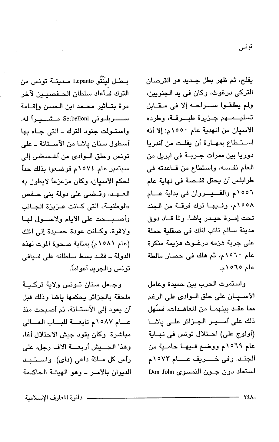 يفلح، ثم ظهر بطل جديد هو القرصان التركى درغوث، وكان في يد الجنويين، ولم يطلقوا سراحه إلا في مقابل تسليمهم جزيرة طبرقة، وطرده الأسيان من المهدية عام 1550 م؛ إلا أنه استطاع بمهارة أن يفلت من أندريا دوريا بين ممرات جربة في ابريل من العام نفسه، واستطاع من قاعدته في طرابلس أن يحتل قفصة في نهاية عام 1556 م والقيروان في بداية عام 1558 م، وفيها ترك فرقة من الجند تحت إمرة حيدر باشا. ولما قاد دوق مدينة سالم نائب الملك في صقلية حملة على جربة هزمه درغوث هزيمة منكرة عام 1560 م، ثم هلك في حصار مالطة عام 1565 م.