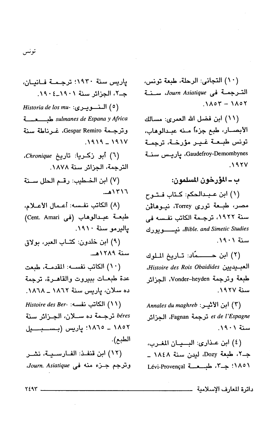 (11) الكاتب نفسه: Histoire des Ber beres ترجمة ده سلان، الجزائر سنة 1852 - 1865؛ باريس (بسبيل الطبع).
