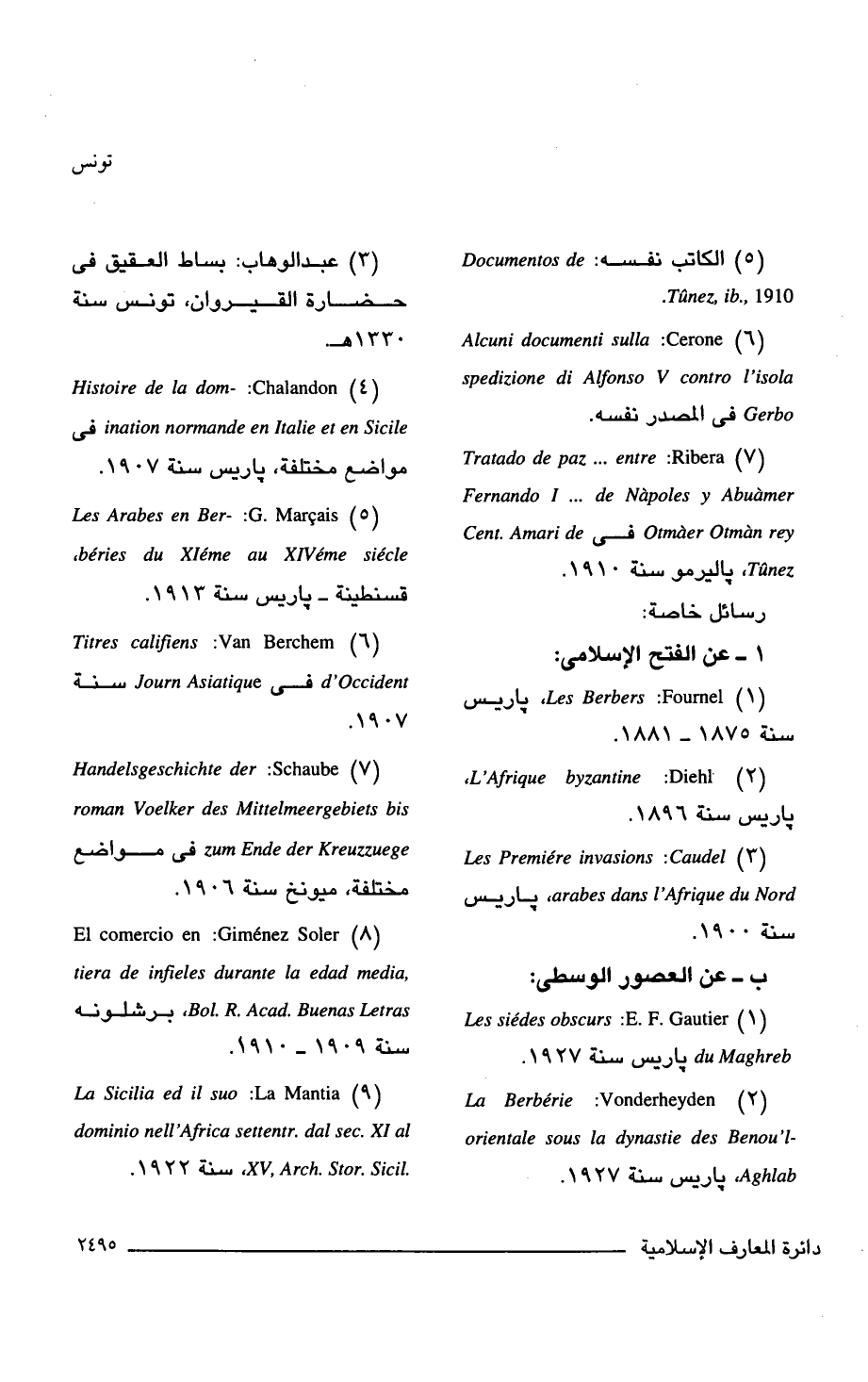 (9) La Sicilia ed it suo: La Mantia dominio nell'Africa settentr. dal sec. XI al Arrh. Stor. Sicil , xv, سنة 1922.