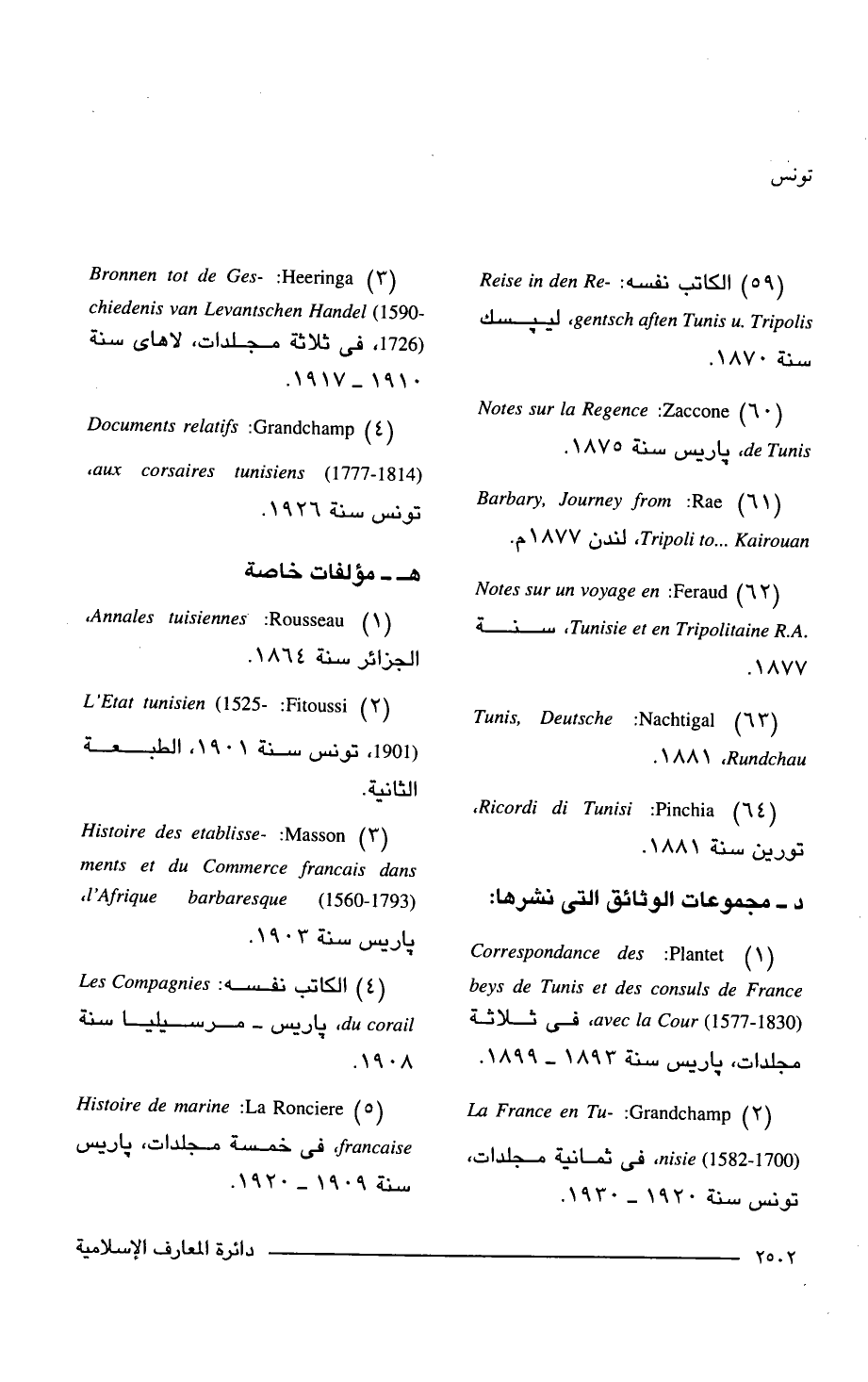(2) Grandchamp: La France en Tu (1582 - 1700) nisie، في ثمانية مجلدات، تونس سنة 1920 - 1930.