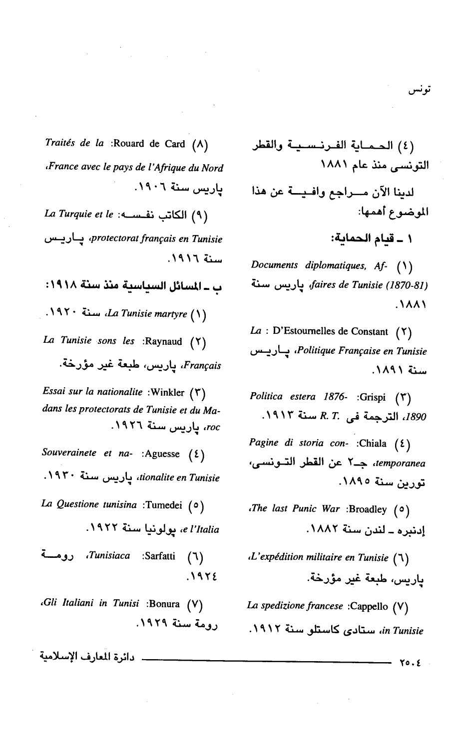 (2) La: DEstournlles de Constant Politique Francaise en Tunisie، باريس سنة 1891.