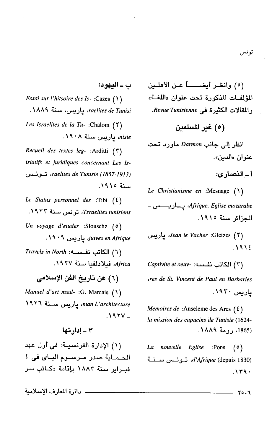 (5) وانظر أيضًا عن الأهلين المؤلفات المذكورة تحت عنوان "اللغة" والمقالات الكثيرة في Tunisienne Revue.