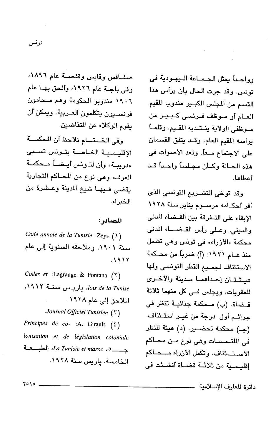 (2) Codes et: Lagrange & Fontana , lois de la Tunise باريس سنة 1912، الملاحق إلى عام 1928.