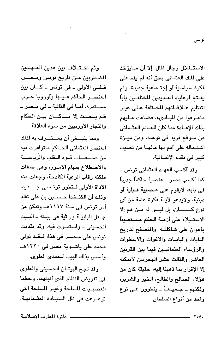 ومما ينبغي أن يعترف به لذلك العنصر العثمانى الحاكم ما توافرت فيه من صفات قوة القلب والرياسة والاضطلاع بمهام الأمور, وهي صفات ملكته رقاب الرعية الكادحة، وجعلت منه الأداة الأولى لتطور تونسى جديد.