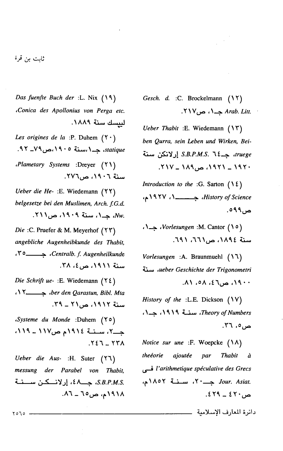 (13) Ueber Thabit: E. Wiedemann -ben Qurra, sein Leben and Wirken, Bei truege، جـ 64. S.B.P.M.S إرلانكن سنة 1920 - 1921, ص 189 - 217.