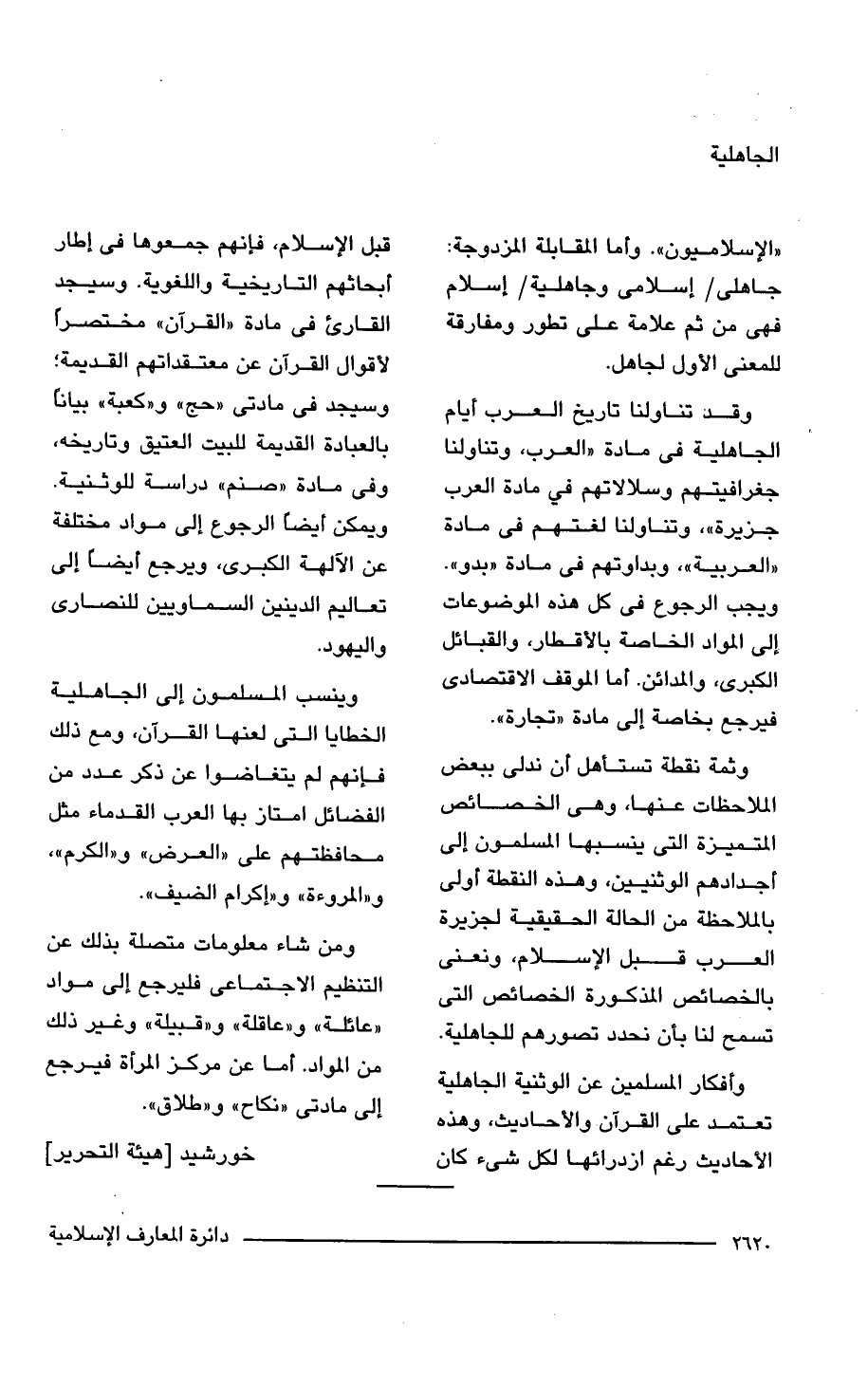 "الإسلاميون" وأما المقابلة المزدوجة: جاهلى / إسلامي وجاهلية / إسلام فهي من ثم علامة على تطور ومفارقة للمعنى الأول لجاهل.