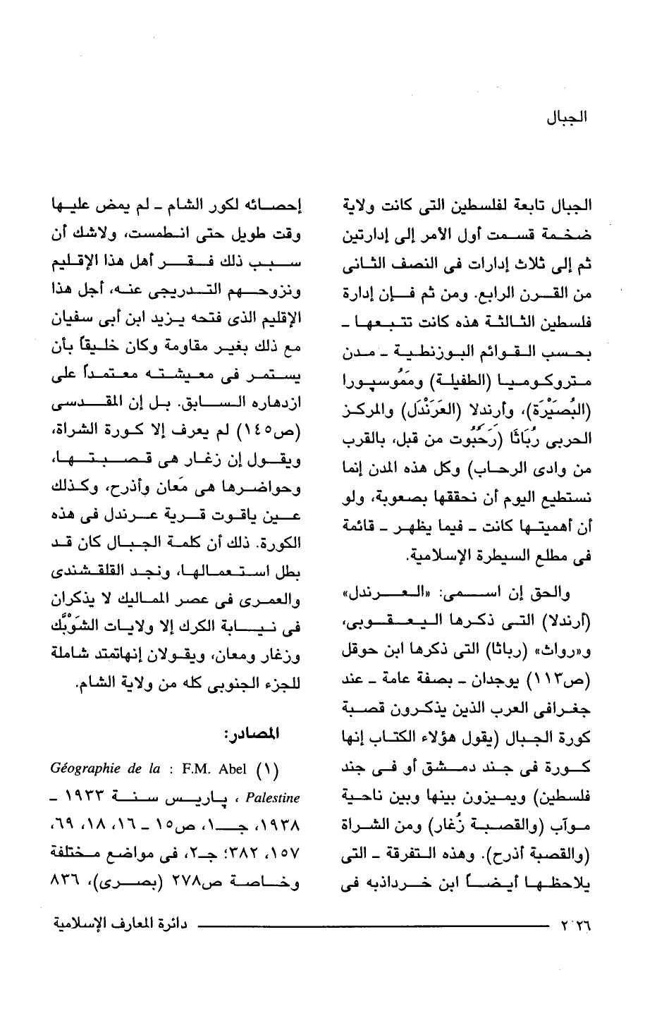 (1) Geographie de la: F.M. Abel Palestine , باريس سنة 1933 - 1938، ج 1، ص 15 - 16، 18، 69، 157، 382؛ ج 2، في مواضع مختلفة وخاصة ص 278 (بصرى)، 836