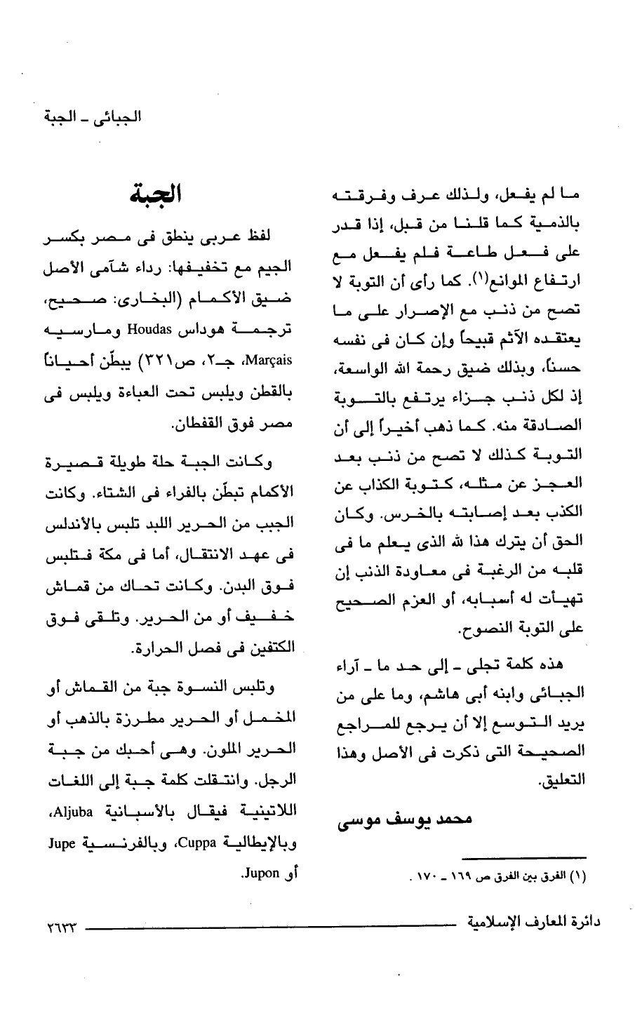 ما لم يفعل، ولذلك عرف وفرقته بالذمية كما قلنا من قبل، إذا قدر على فعل طاعة فلم يفعل مع ارتفاع الموانع (¬1). كما رأى أن التوبة لا تصح من ذنب مع الإصرار على ما يعتقده الآثم قبيحًا وإن كان في نفسه حسنا، وبذلك ضيق رحمة الله الواسعة، إذ لكل ذنب جزاء يرتفع بالتوبة الصادقة منه. كما ذهب أخيرًا إلى أن التوبة كذلك لا تصح من ذنب بعد العجز عن مثله، كتوبة الكذاب عن الكذب بعد إصابته بالخرس. وكان الحق أن يترك هذا لله الذي يعلم ما في قلبه من الرغبة في معاودة الذنب إن تهيأت له أسبابه، أو العزم الصحيح على التوبة النصوح. هذه كلمة تجلى -إلى حد ما- آراء الجبائى وابنه أبي هاشم، وما على من يريد التوسع إلا أن يرجع للمراجع الصحيحة التي ذكرت في الأصل وهذا التعليق.