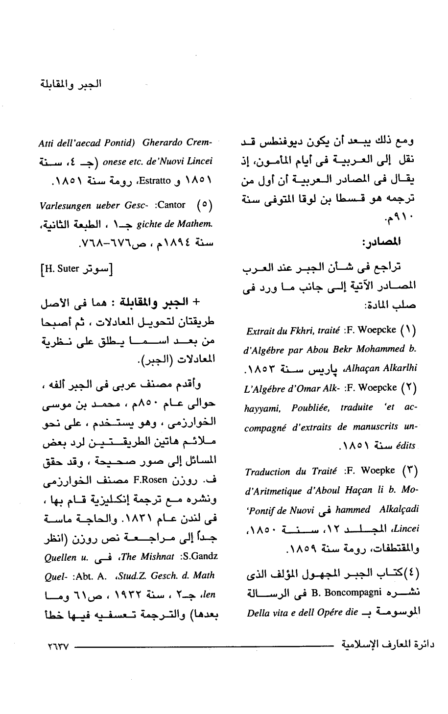 (5) Varlesungen ueber Gesc-: Cantor .gichte de Mathem ج 1، الطبعة الثانية، سنة 1894 م، ص 676 - 768.