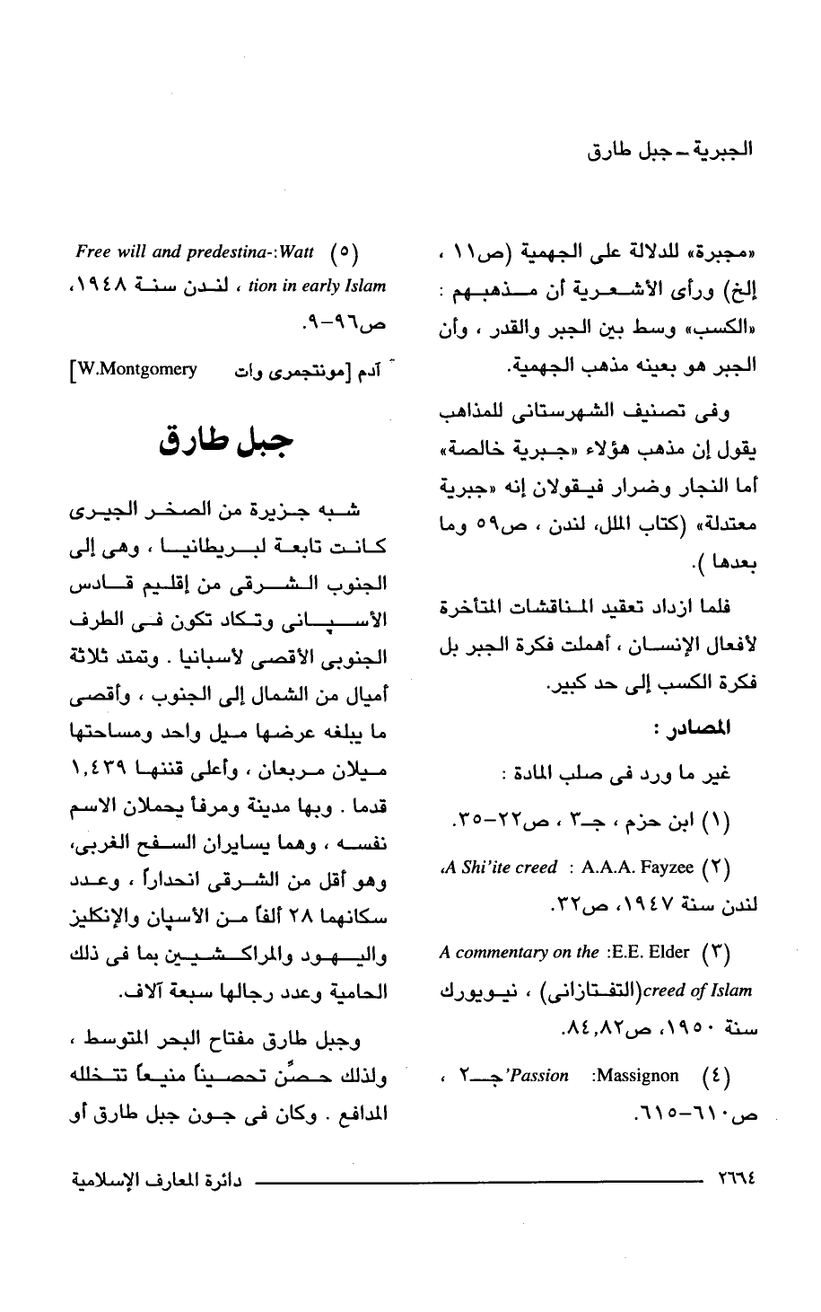 (5) Free will and predestina-: Watt، tion in early Islam , لندن سنة ص 91 - 9.