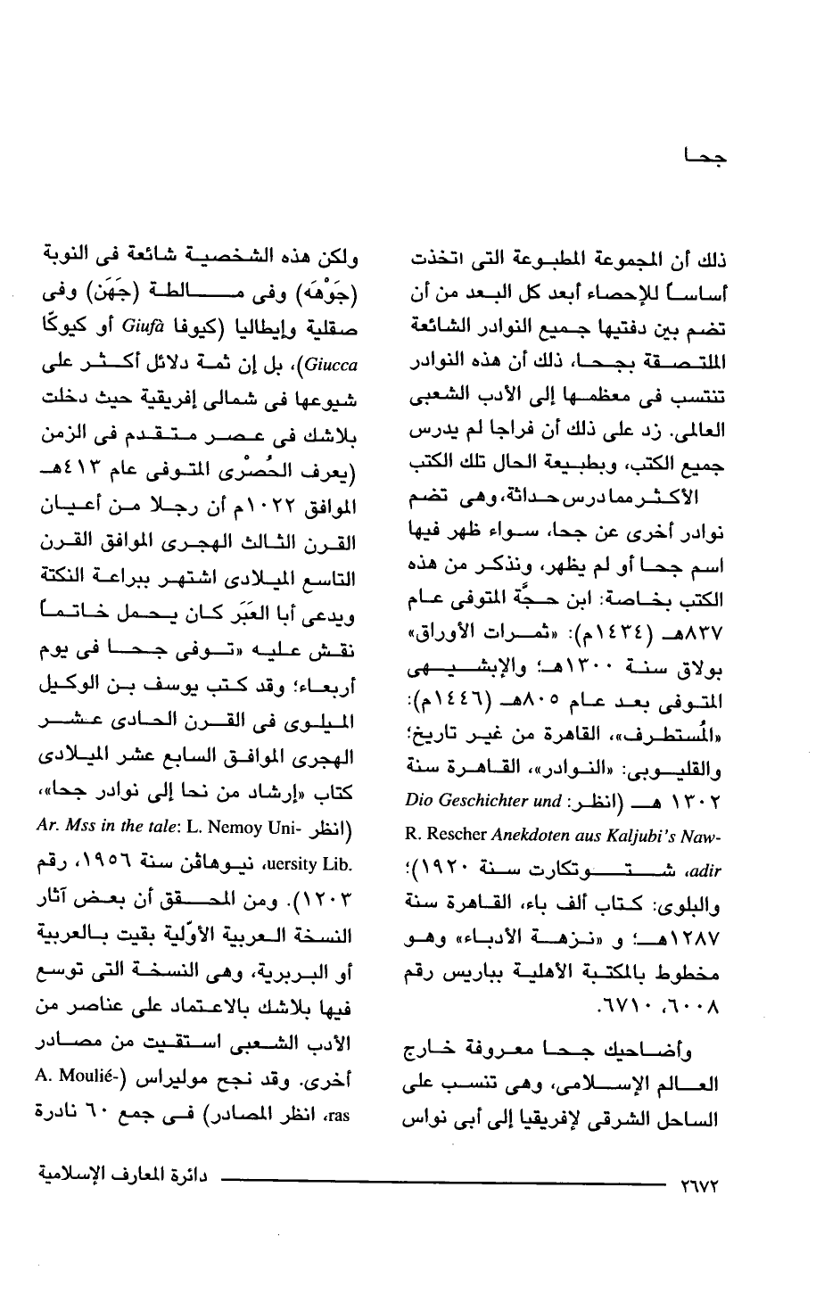ذلك أن المجموعة المطبوعة التي اتخذت أساسا للإحصاء أبعد كل البعد من أن تضم بين دفتيها جميع النوادر الشائعة الملتصقة بجحا، ذلك أن هذه النوادر تنتسب في معظمها إلى الأدب الشعبي العالمى. زد على ذلك أن فراجا لم يدرس جميع الكتب، وبطبيعة الحال تلك الكتب الأكثر مما درس حداثة، وهي تضم نوادر أخرى عن جحا، سواء ظهر فيها اسم جحا أو لم يظهر، ونذكر من هذه الكتب بخاصة: ابن حجة المتوفى عام 837 هـ (1434 م): "ثمرات الأوراق" بولاق سنة 1300 هـ والإبشيهى المتوفى بعد عام 805 هـ (1446 م): "المُستطرف"، القاهرة من غير تاريخ؛ والقليوبى: "النوادر"، القاهرة سنة 1302 هـ (انظر Dio Geschichter und: - Kaliubi's Naw R. Rescher Anekdoten aus adir، شتوتكارت سنة 1920)؛ والبلوى: كتاب ألف باء، القاهرة سنة 1287 هـ و "نزهة الأدباء" وهو مخطوط بالمكتبة الأهلية بباريس رقم 6008، 6710.