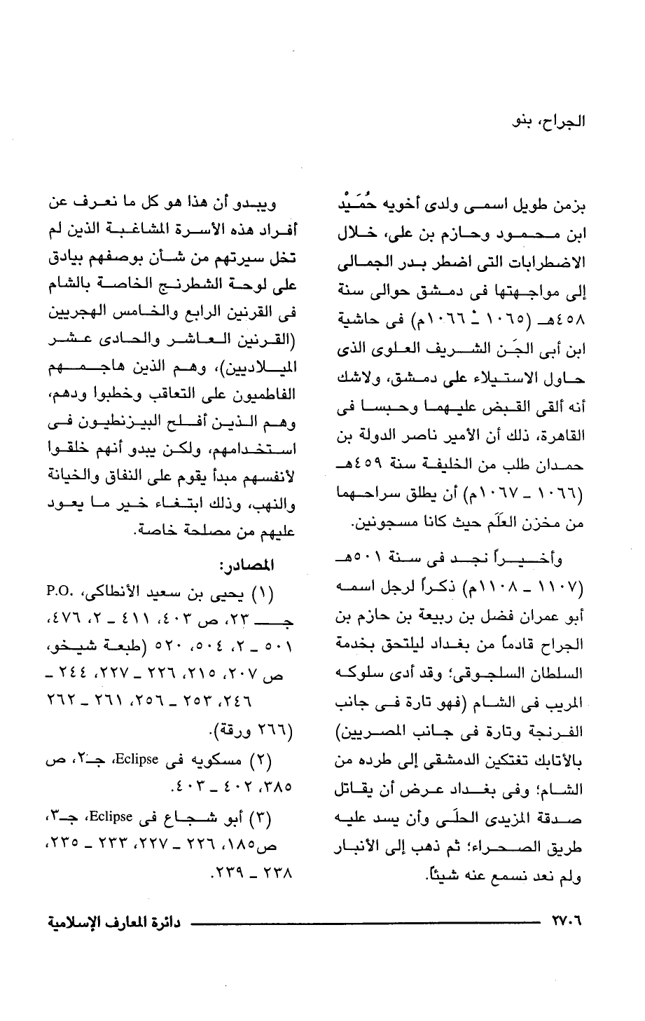 (1) يحيى بن سعيد الأنطاكى، P.O. جـ 23، ص 411 - 2، 476، 501 - 2، 4 - 520 (طبعة شيخو، ص 207، 215، 226 - 227، 244 - 246، 253 - 256، 261 - 262 (266 ورقة).