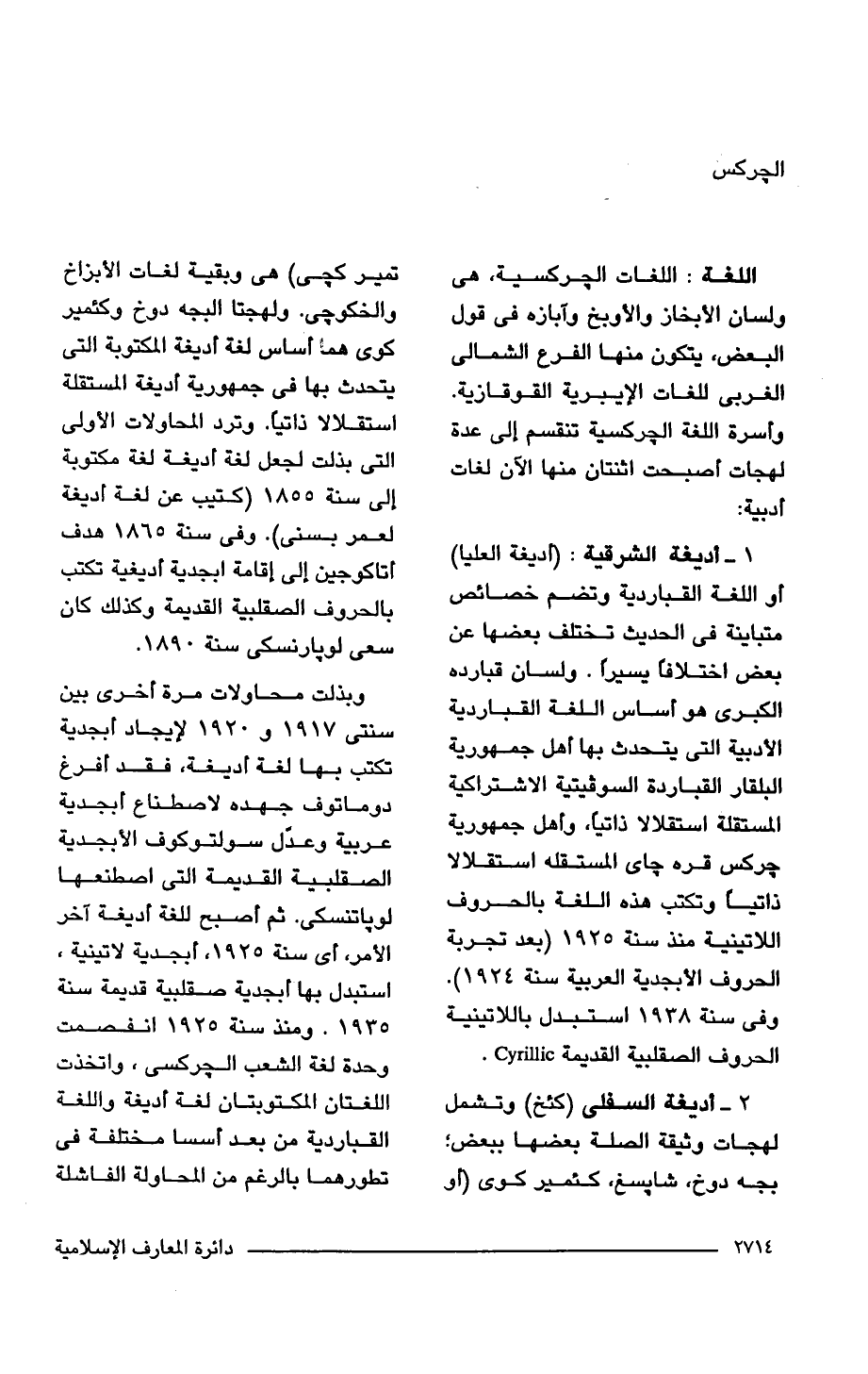 اللغه: اللغات الجركسية، هي ولسان الأبخاز والأوبخ وآبازه في قول البعض، يتكون منها الفرع الشمالي الغربي للغات الإيبرية القوقازية. وأسرة اللغة الجركسية تنقسم إلى عدة لهجات أصبحت اثنتان منها الآن لغات أدبية: