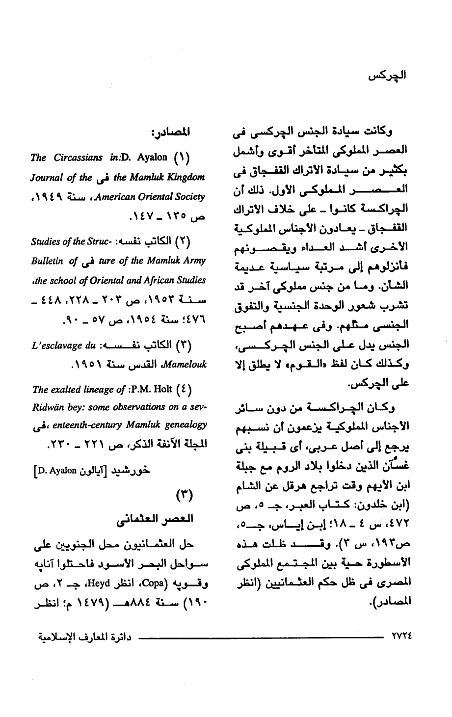 (1) The Circassian in.-D. Ayalon Kingdom في Journal of the Oriental Society American سنة 1949، ص 135 - 147.