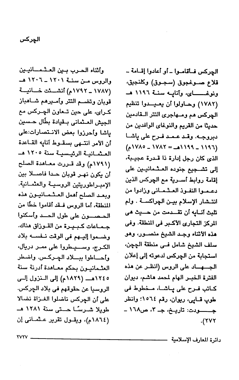 الجركس فأقاموا -أو أعادوا إقامة- قلاع صوغجوق (سجوق) وكلنجيق، ونوغاى، وآنابه سنة 1196 هـ (1782) وحاولوا أن يعيدوا تنظيم الجركس هم ومهاجرى التتر القادمين حديثًا من القريم والنوغاى الوافدين من دبروجه. وقد عمد فرح على باشا (1196 - 1199 هـ = 1782 - 1785 م) الذي كان رجل إدارة ذا قدرة عجيبة، إلى تشجيع جنوده العثمانيين على إقامة روابط أسرية مع الجركس الذين دعموا النفوذ العثمانى وزادوا من انتشار الإسلام بين الجراكسة. ولم تلبث آنايه أن تقدمت من حيث هي المركز التجارى الأكبر في المنطقة. وفي هذه الأثناء وجد الشيخ منصور، وهو سلف الشيخ شامل في منطقة الججن، استجابة من الجركس لدعوته إلى إعلان الجهاد على الروس (انظر عن هذه الفترة الخبر الهام لمحمد هاشم، ديوان كاتب فرح على باشا، مخطوط في طوب قابي، ريوان، رقم 1564؛ وانظر جودت: تا ريخ، جـ 3، ص 168 - 272).