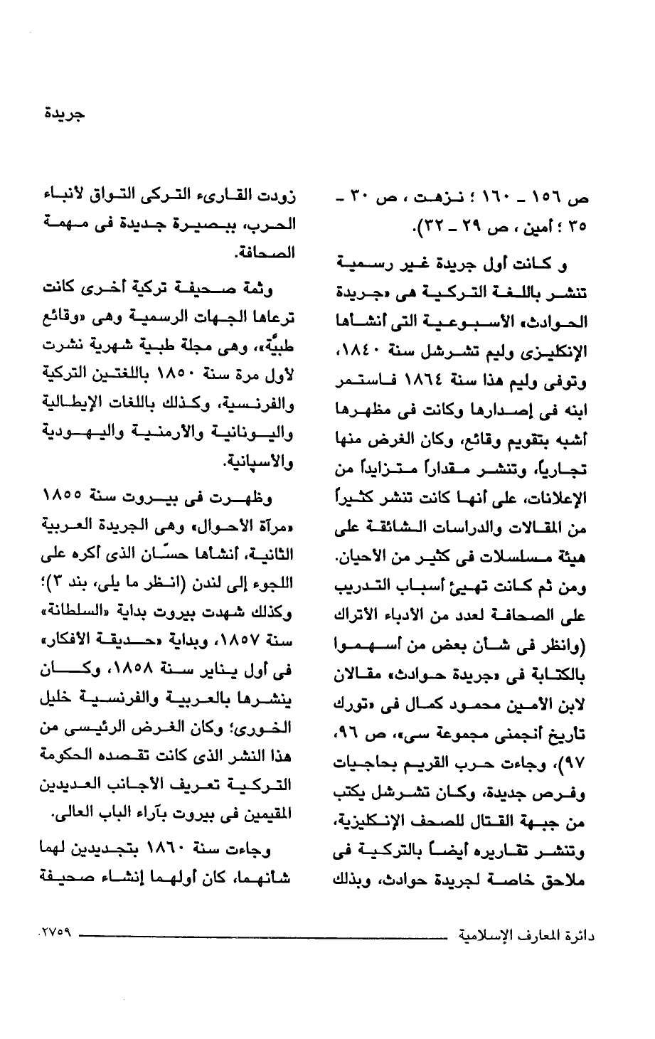 وظهرت في بيروت سنة 1855 "مرآة الأحوال" وهي الجريدة العربية الثانية، أنشأها حسّان الذي أكره على اللجوء إلى لندن (انظر ما يلي، بند 3)؛ وكذلك شهدت بيروت بداية "السلطانة" سنة 1857، وبداية "حديقة الأفكار" في أول يناير سنة 1858، وكان ينشرها بالعربية والفرنسية خليل الخورى؛ وكان الغرض الرئيسى من هذا النشر الذي كانت تقصده الحكومة التركية تعريف الأجانب العديدين المقيمين في بيروت بآراء الباب العالى.