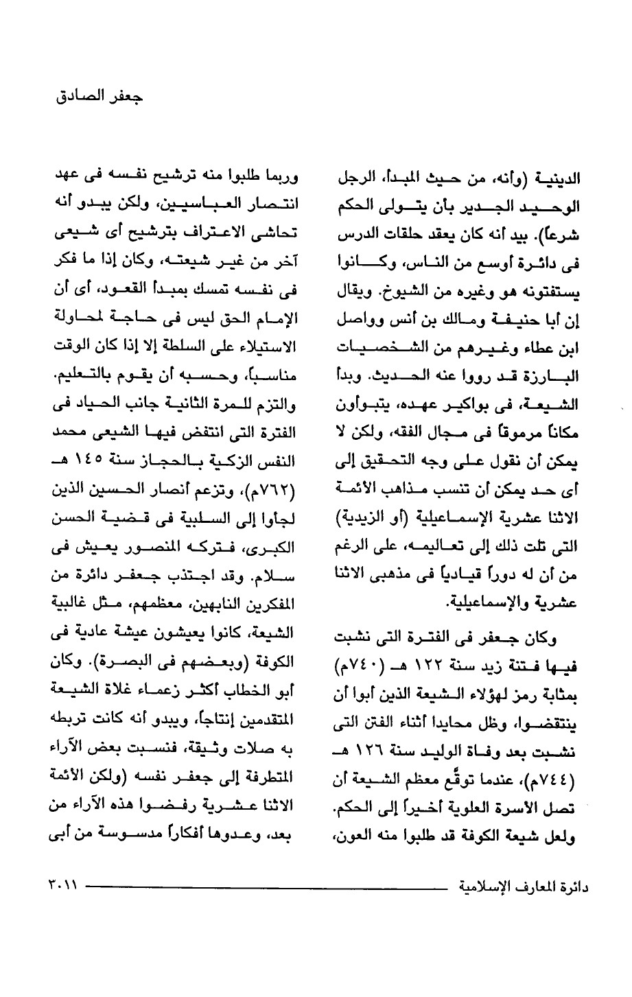وكان جعفر في الفترة التي نشبت فيها فتنة زيد سنة 122 هـ (740 م) بمثابة رمز لهؤلاء الشيعة الذين لم أبوا أن ينتقضوا، وظل محايدا لم ثناء الفتن التي نشبت بعد وفاة الوليد سنة 126 هـ (744 م) عندما توقع معظم الشيعة أن تصل الأسرة العلوية أخيرًا إلى الحكم. ولعل شيعة الكوفة قد طلبوا منه العون، وربما طلبوا منه ترشيح نفسه في عهد انتصار العباسيين، ولكن يبدو أنه تحاشى الاعتراف بترشيح أي شيعى آخر من غير شيعته، وكان إذا ما فكر في نفسه تمسك بمبدأ القعود، أي أن الإمام الحق ليس في حاجة لمحاولة الاستيلاء على السلطة إلا إذا كان الوقت مناسبًا، وحسبه أن يقوم بالتعليم. والتزم للمرة الثانية جانب الحياد في الفترة التي انتفض فيها الشيعى محمد النفس الزكية بالحجاز سنة 145 هـ (762 م) , وتزعم لم نصار الحسين الذين لجأوا إلى السلبية في قضية الحسن الكبرى، فتركه المنصور يعيش في سلام. وقد اجتذب جعفر دائرة من المفكرين النابهين، معظمهم، مثل غالبية الشيعة، كانوا يعيشون عيشة عادية في الكوفة (وبعضهم في البصرة). وكان أبوالخطاب أكثر زعماء غلاة الشيعة المتقدمين إنتاجًا، ويبدو أنه كانت تربطه به صلات وثيقة، فنسبت بعض الآراء المتطرفة إلى جعفر نفسه (ولكن الأئمة الاثنا عشرية رفضوا هذه الآراء من بعد، وعدوها أفكارًا مدسوسة من أبي