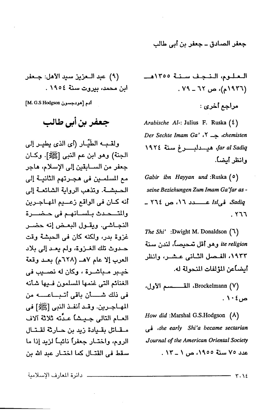 (8) Marshal G.S.Hodgson: How did the early Shi'a became sectarian, في Journal of the American Oriental Society عدد 75 سنة 1955، ص 1 - 13.