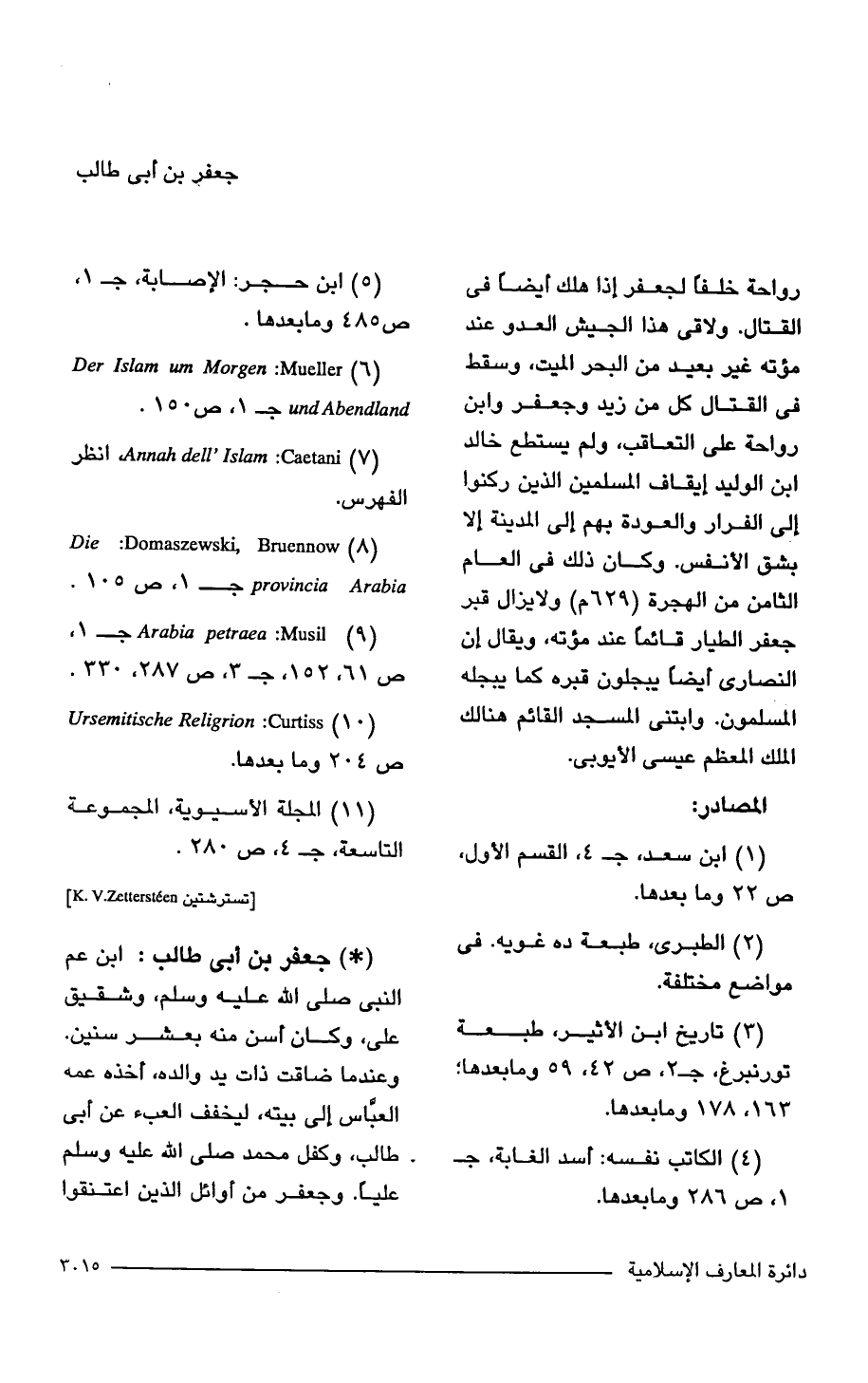 (*) جعفر بن أبي طالب: ابن عم النبي صلى الله عليه وسلم، وشقيق على، وكان أسن منه بعشر سنين. وعندما ضاقت ذات يد والده، أخذه عمه العبَّاس إلى بيته، ليخفف العبء عن أبي طالب، وكفل محمد صلى الله عليه وسلم عليًّا. وجعفر من أوائل الذين اعتنقوا