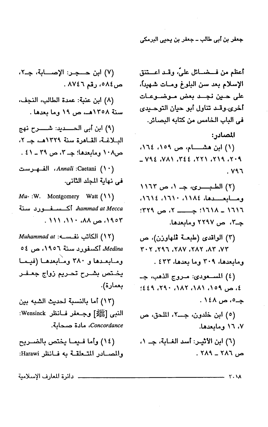(12) الكاتب نفسه: Muhammad at Medina، أكسفورد سنة 1956، ص 54 وما بعدها و 380 وما بعدها (فيما يختص بشرح تحريم زواج جعفر بعمارة).