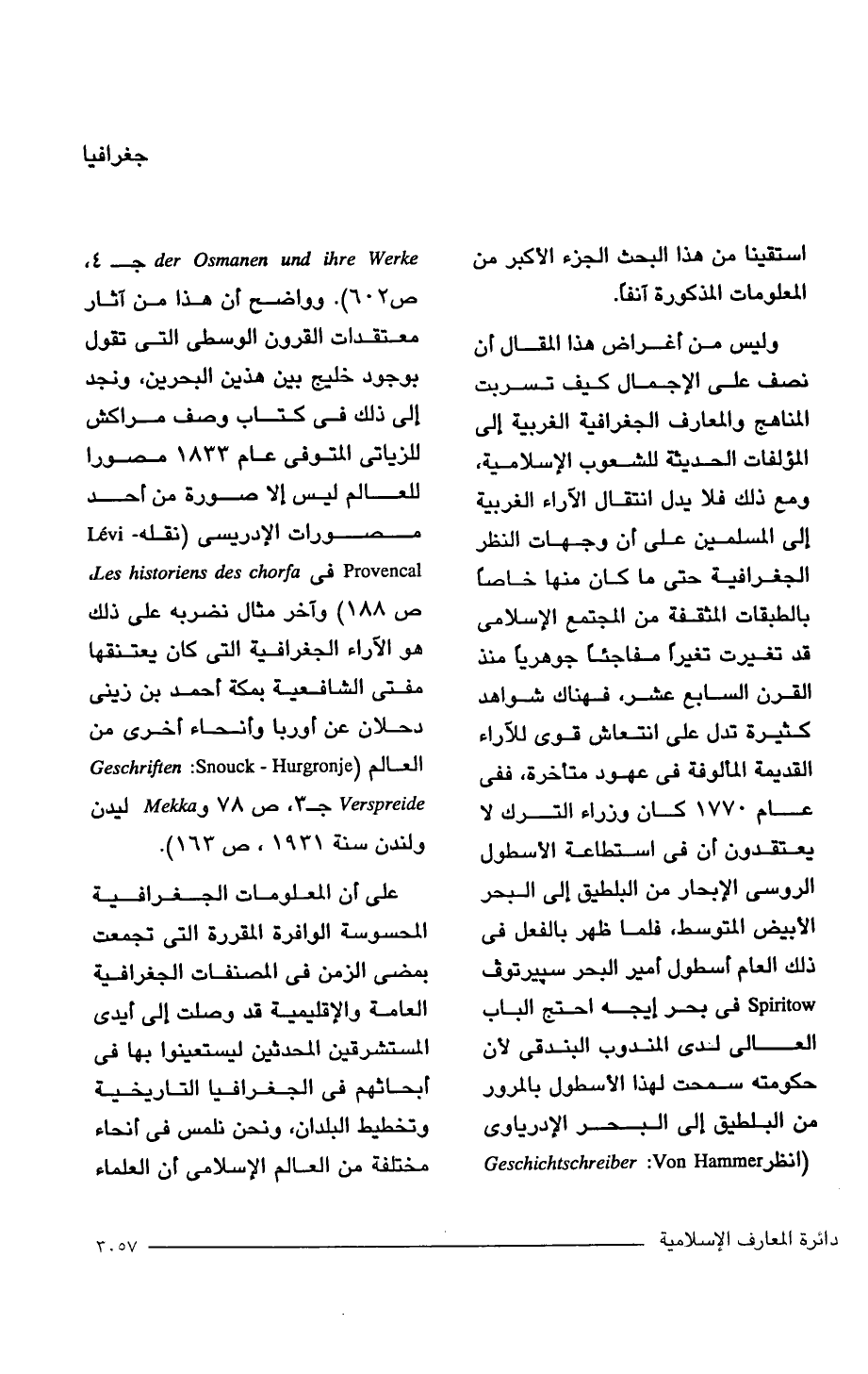 على أن المعلومات الجغرافية المحسوسة الوافرة المقررة التي تجمعت بمضى الزمن في المصنفات الجغرافية العامة والإقليمية قد وصلت إلى أيدى المستشرقين المحدثين ليستعينوا بها في أبحاثهم في الجغرافيا التاريخية وتخطيط البلدان، ونحن نلمس في أنحاء مختلفة من العالم الإسلامي أن العلماء