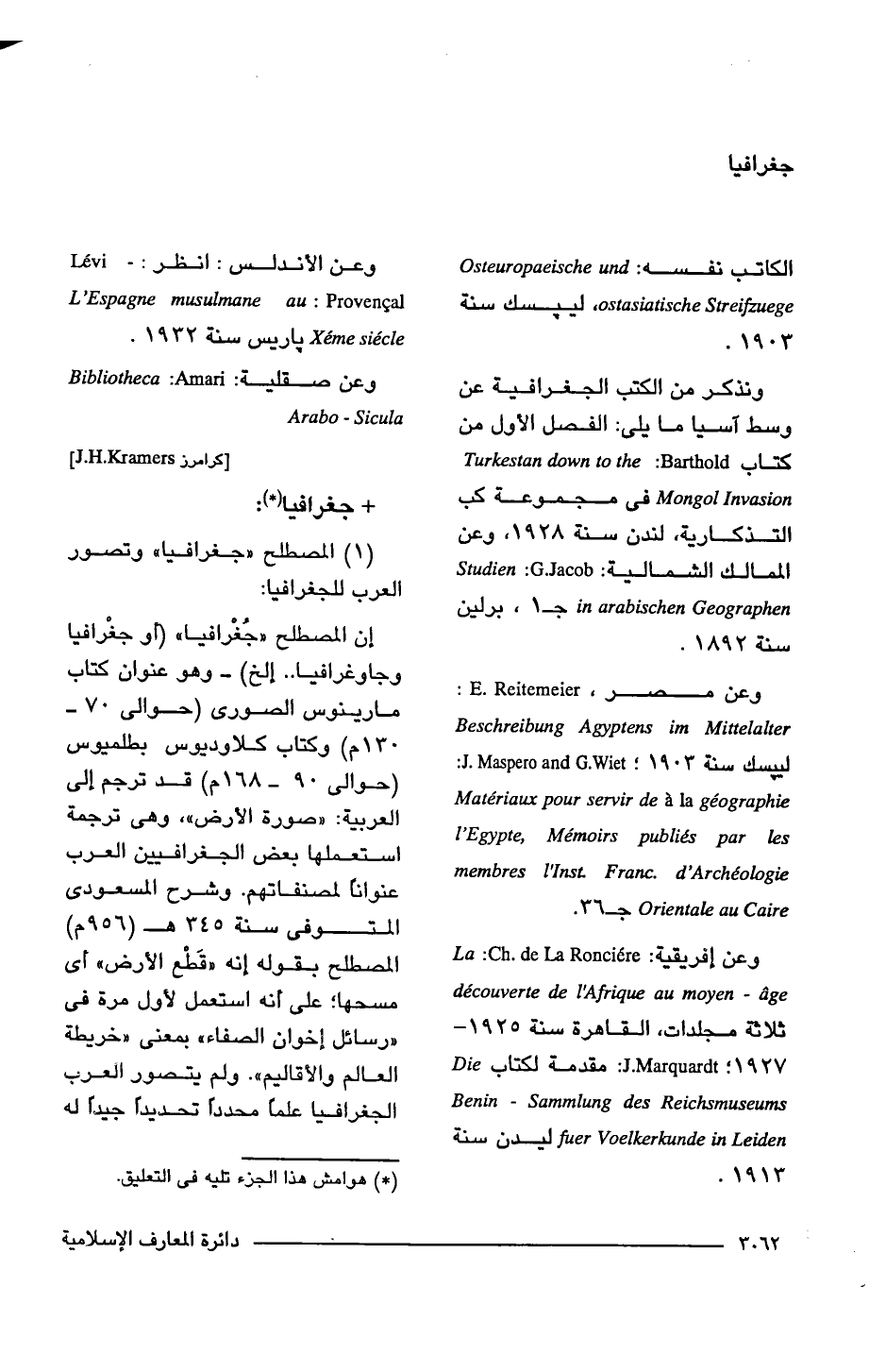 وعن إفريقية: Ronciere La: Ch. de la decouverte de l'Afrique au moyen - age ثلاثة مجلدات، القاهرة سنة 1925 - 1927؛ J.Marquardt: مقدمة لكتابء Die Benin - Sammlung des Reichsmuseums fuer Voelkerkunde in Leiden ليدن سنة 1913.