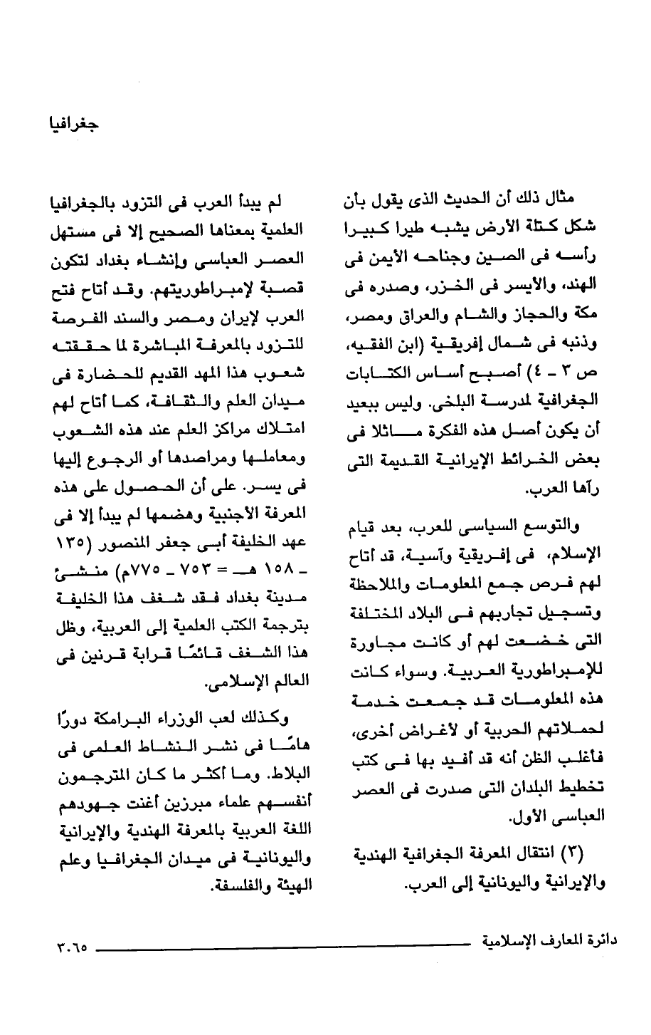 (3) انتقال المعرفة الجغرافية الهندية والإيرانية واليونانية إلى العرب.