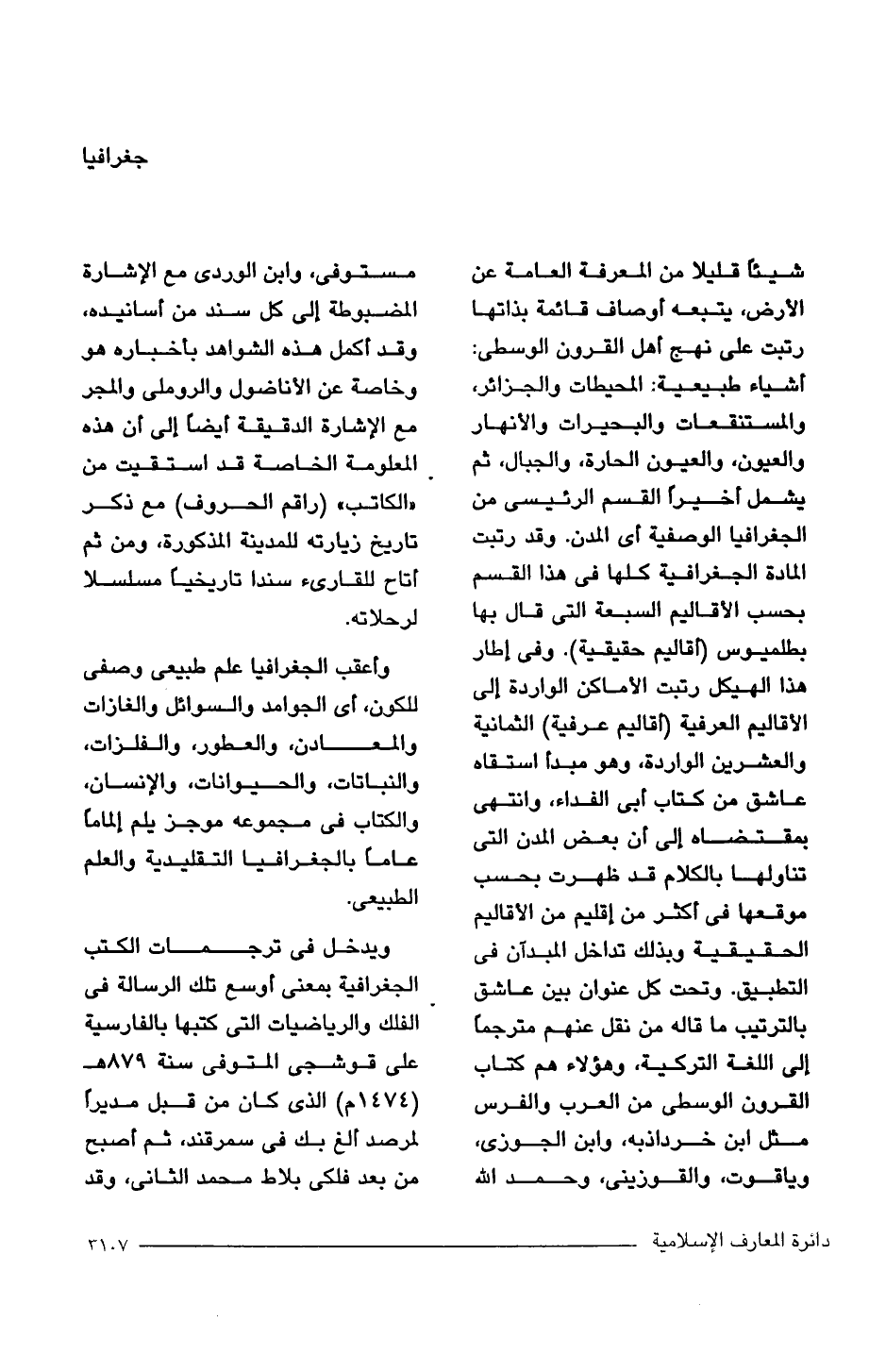 ويدخل في ترجمات الكتب الجغرافية بمعنى أوسع تلك الرسالة في الفلك والرياضيات التي كتبها بالفارسية على قوشجى المتوفى سنة 879 هـ (1474 م) الذي كان من قبل مديرًا لمرصد ألغ بك في سمرقند، ثم اصبح من بعد فلكى بلاط محمد الثاني، وقد