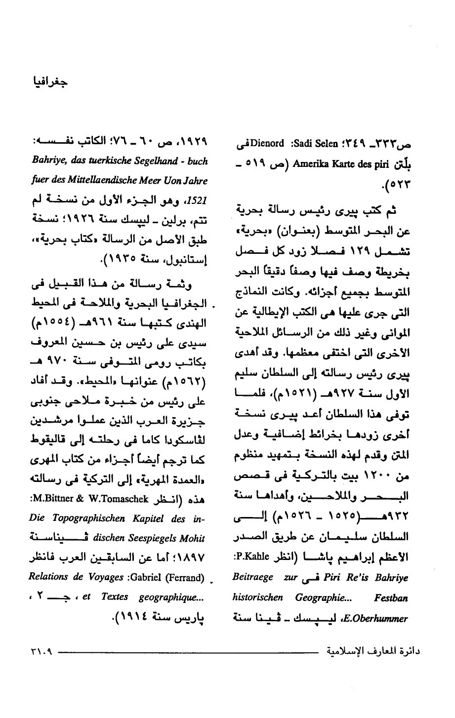 ص 333 - 349؛ Dienord: Sadi Selen في بلّتن Amerika Karte des piri (ص 519 - 523).