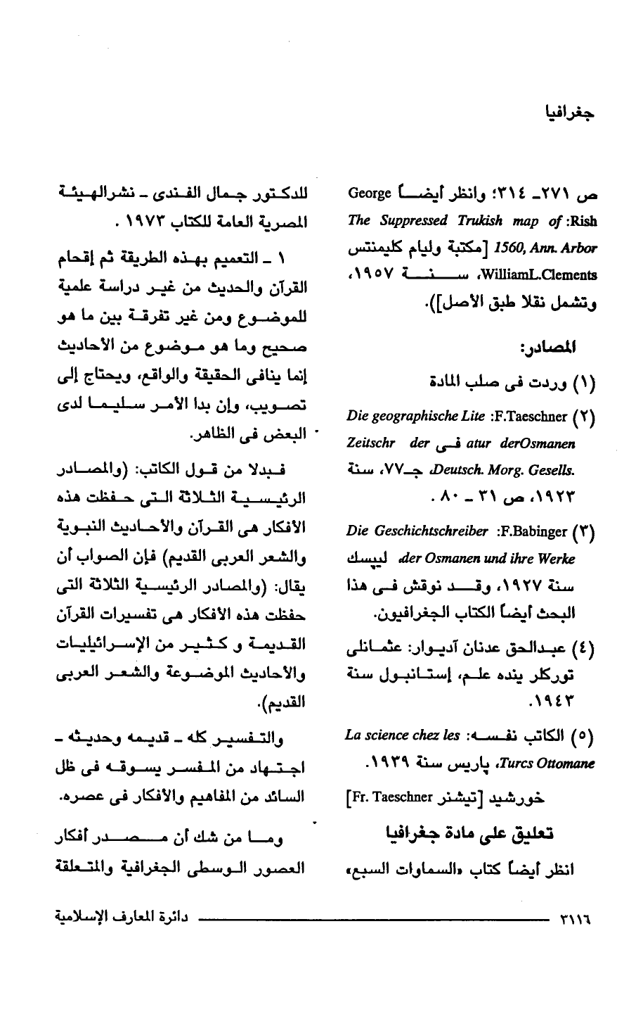 (2) Die geographische Lite: F.Taeschner atur der Osmanen في Zeitschr der . Deutsch. Morg. Gesells جـ 77، سنة 1923، ص 31 - 80.